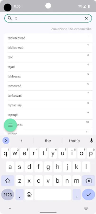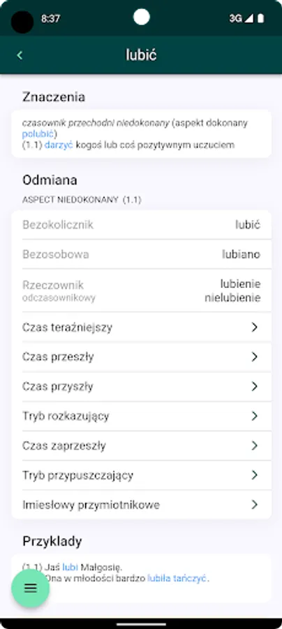 Application "Polski - Czasowniki" is a dictionary of Polish verbs and contains 8490 verbs (meanings, conjunctions, translations and so on).