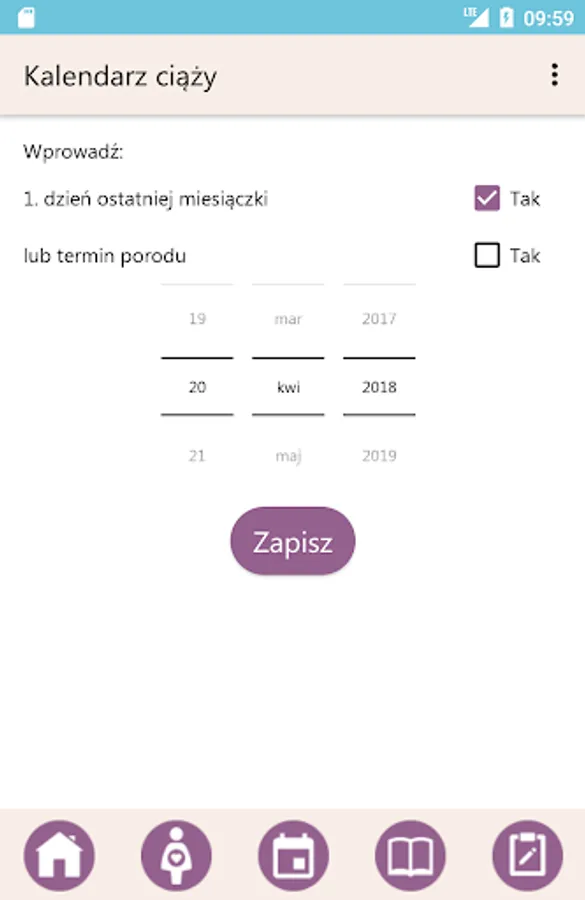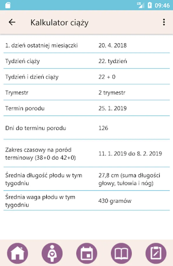 The application website Mamusiom.pl. It includes a calculator and a pregnancy calendar pregnancy. The calculator can calculate pregnancy week of pregnancy trimester, the expected date of birth, number of days to the date of birth and the estimate of the mass and the length of the fetus. With the pregnancy calendar you can find out when you are waiting for any research, when you go on maternity leave and will take place when other events related to pregnancy. Articles about pregnancy week by week devoted to each week of pregnancy in terms of fetal development and the impact of pregnancy on the woman's body. In Polish.