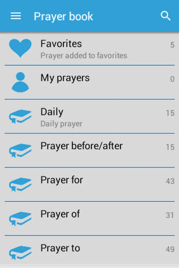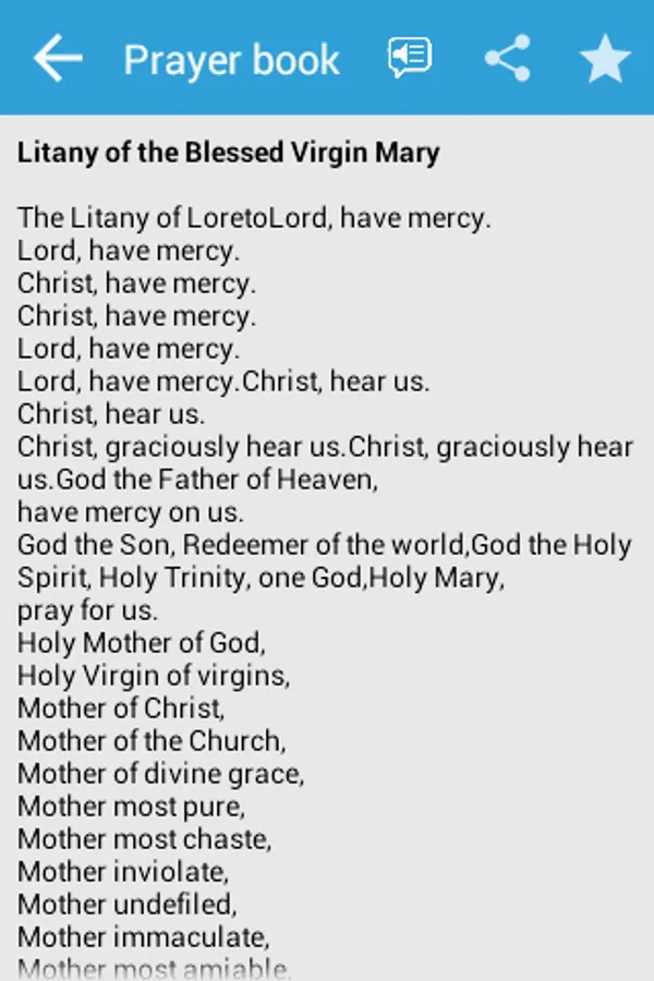 - You can share prayers of others via SMS, email, etc. (facebook doesn't work, paste prayer from clipboard)