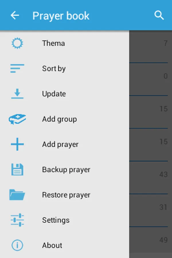 NOTE! Changing the font size of the prayers is available from the beginning of the application. Hold one finger text and the second stretch it :)