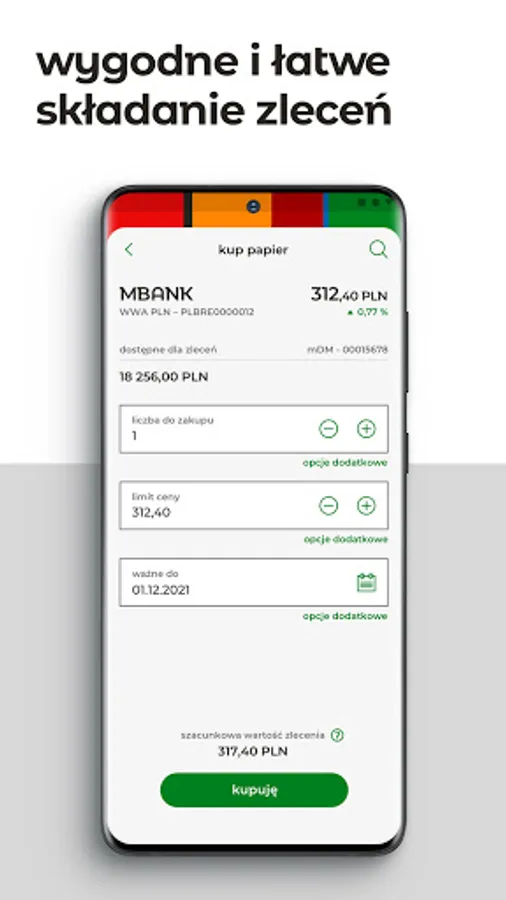 • possibility of placing orders for foreign markets in the currency of the instrument's quotation (available to clients of mBank's brokerage house)