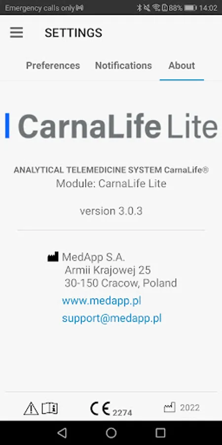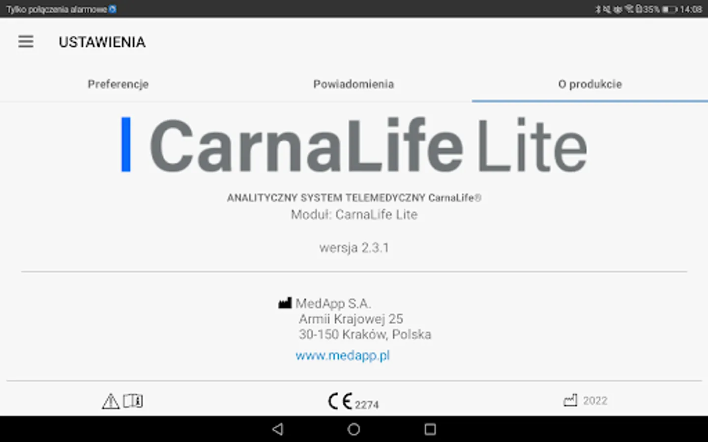 Carna Life Lite is designed especially for home use to record changes that may occur in heart function. Application cooperates with devices equipped with bluetooth.