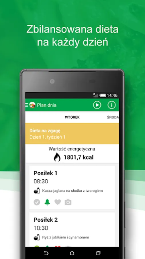 The application offers a varied rules developed by a professional nutritionist, which do not contain meat.