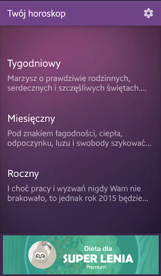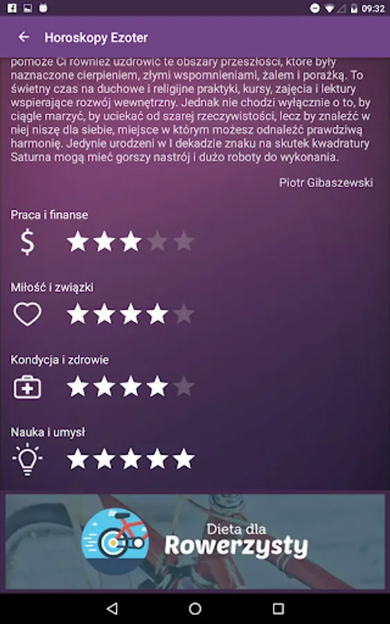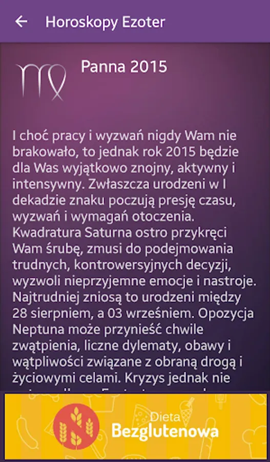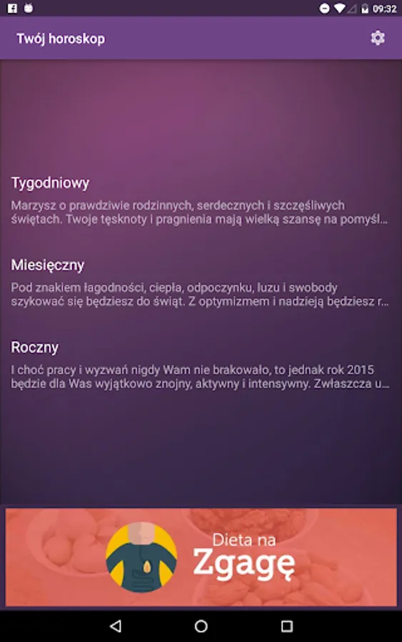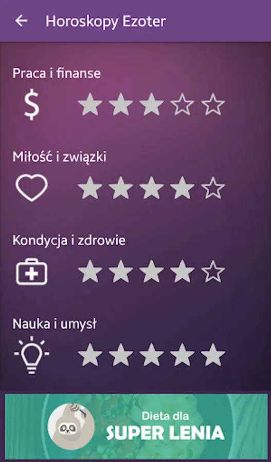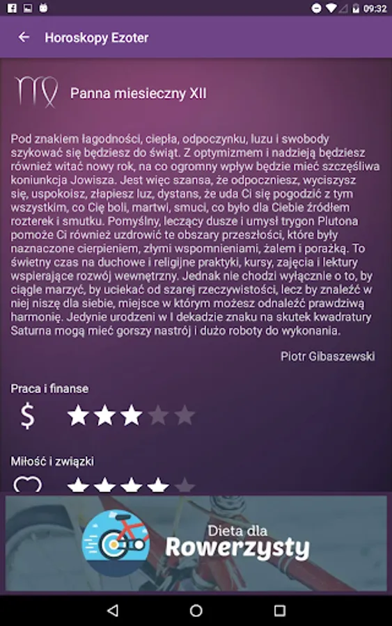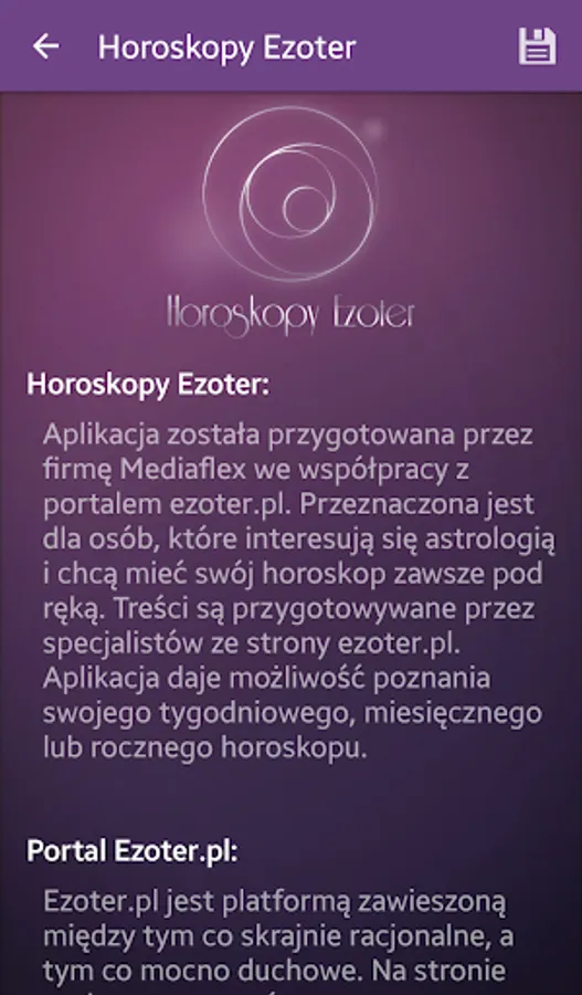 Know your weekly, monthly or yearly horoscope. The texts have been prepared together with specialists in the field of astrology from the Ezoter.pl. Using the app is completely free.