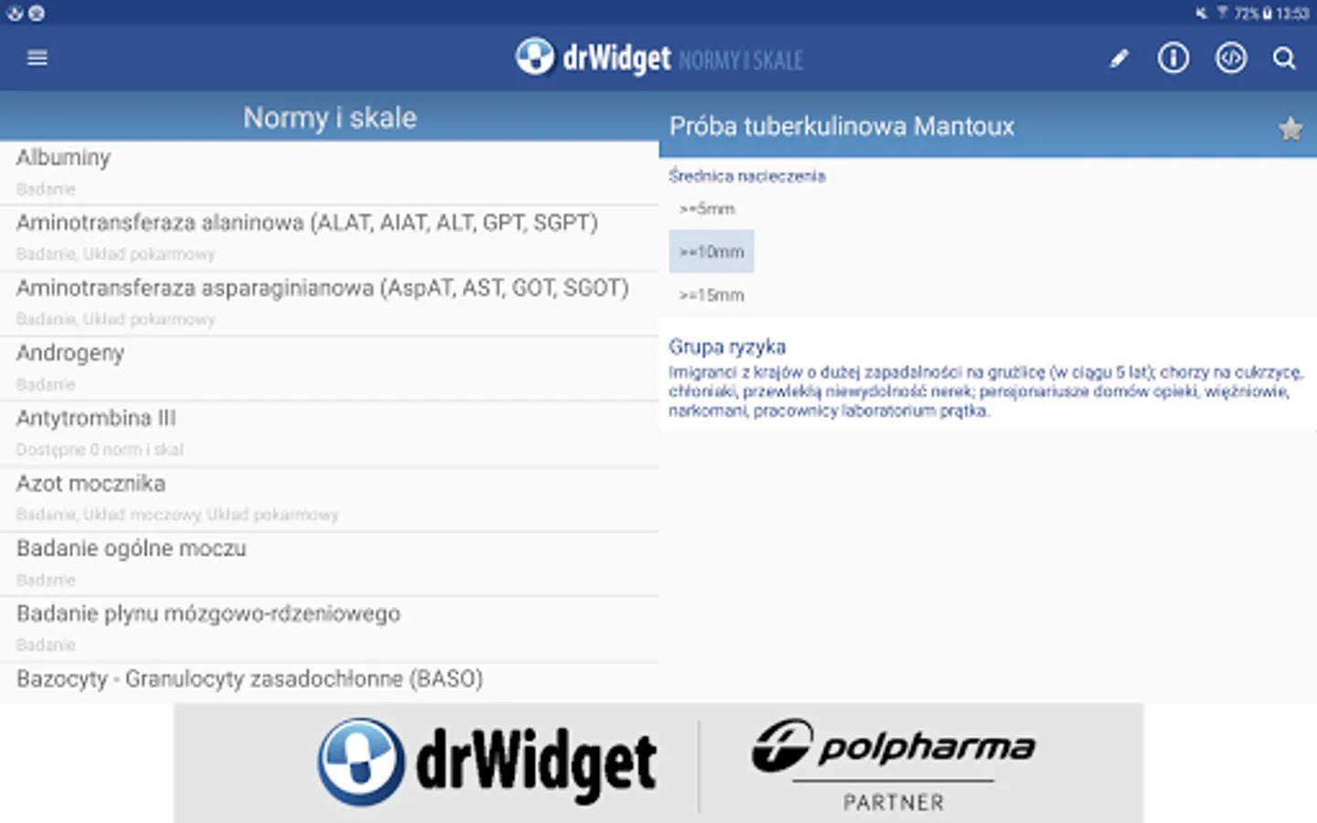 DrWidget standards and scales is an application which allows doctors at any time have access to medical standards and scales commonly used in medicine. With the help of this modern mobile tools you can accurately assess the patient's condition, then to choose the best method of treatment.