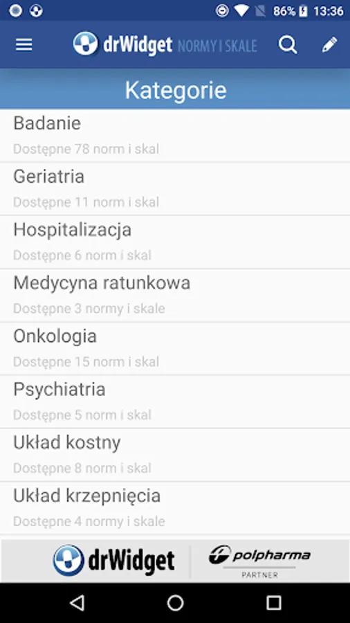 The application consists of two main modules. The first is the "Standards and scales." Users will find a list of nearly 90 different methods of measurement of symptoms and illnesses. Using the option to scale introduction of data of a particular patient, the doctor can quickly interpret them according to the current criteria.