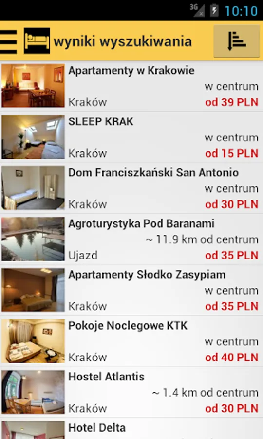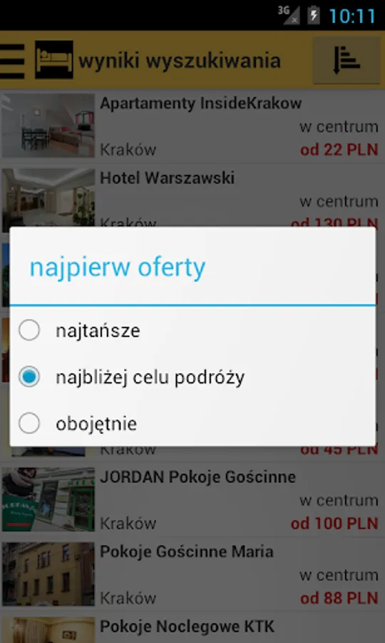 - possibility to sort hotels not only by prices but also according to distance from you (GPS enabled required)