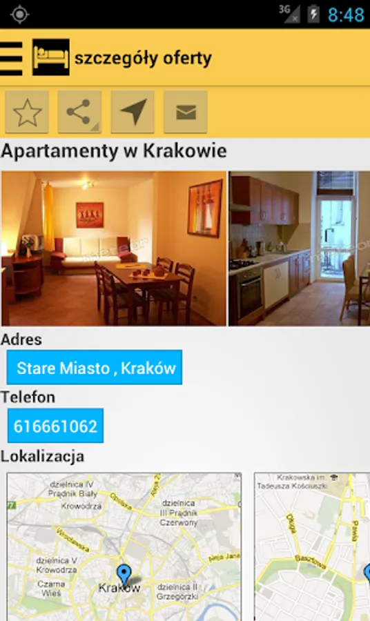 - when viewing the details of the selected offer, call the owner of the facility with one click or start navigation