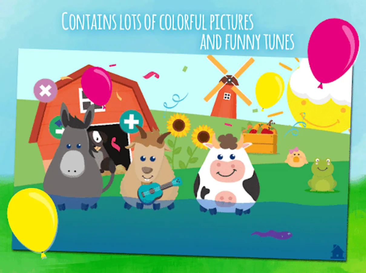 Perfect for kids and toddlers from 1 year old. Each touch or swipe will cause a cheerful reaction of the animal, fruit, vegetable, or the world around them.