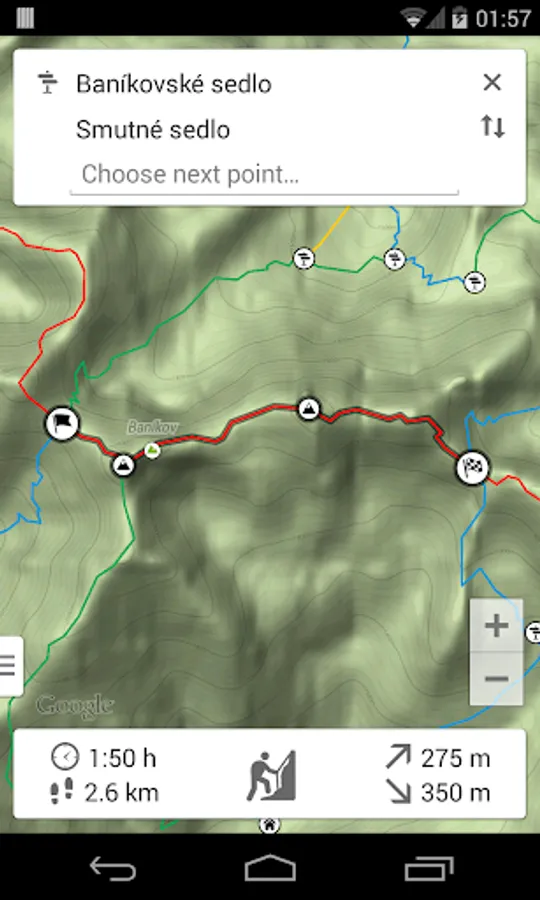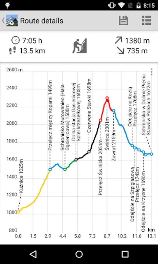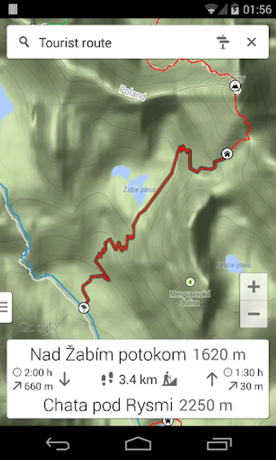 The key feature of the application is a trail calculator that searches for the best route and estimates total hiking time. You just need to select the starting point of the hike and your destination. The application will calculate the fastest or the shortest route, display it on the map and show details such as estimated time, distance to be covered, altitude difference and an approximate level of technical difficulties.