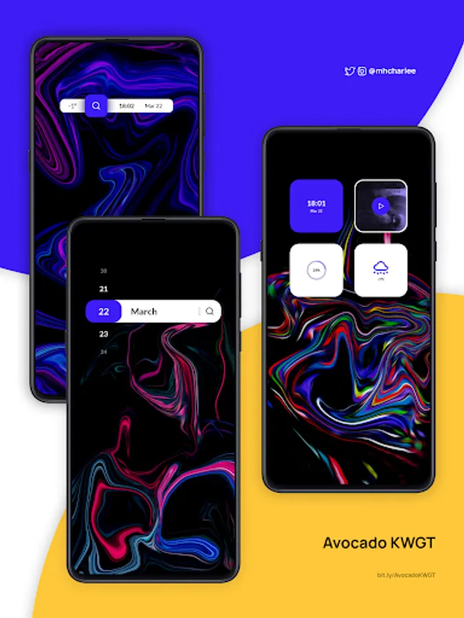 This app contains 128 widgets. Avocado KWGT will satisfy both minimal and elaborate home screens.