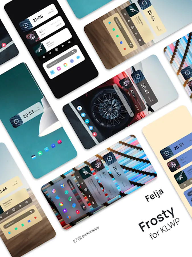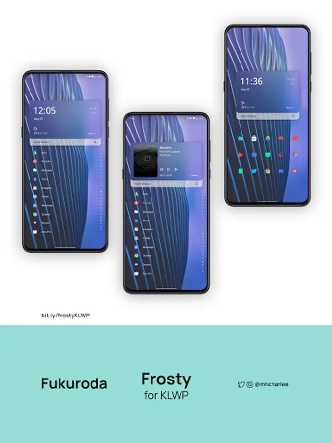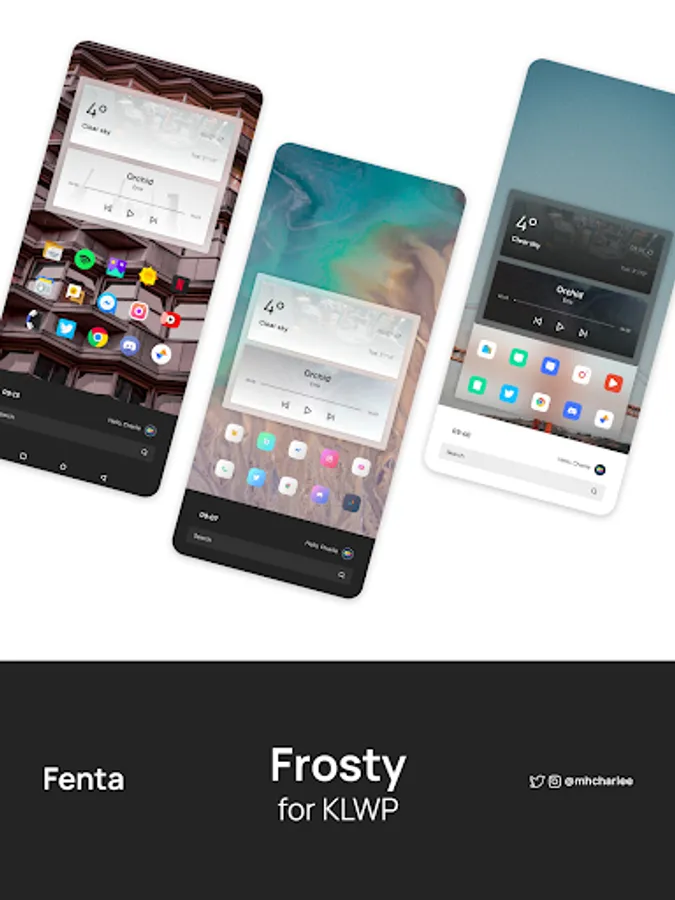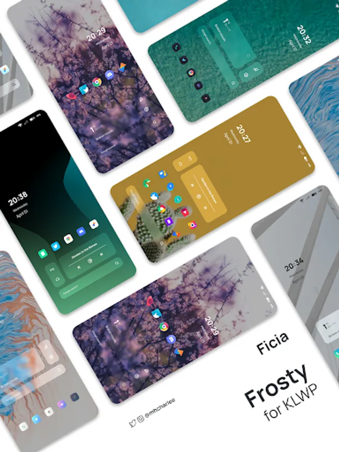 Frosty for KLWP is a collection of elegant home screen setups. This live wallpaper pack contains themes fit for screens of all aspect ratios.