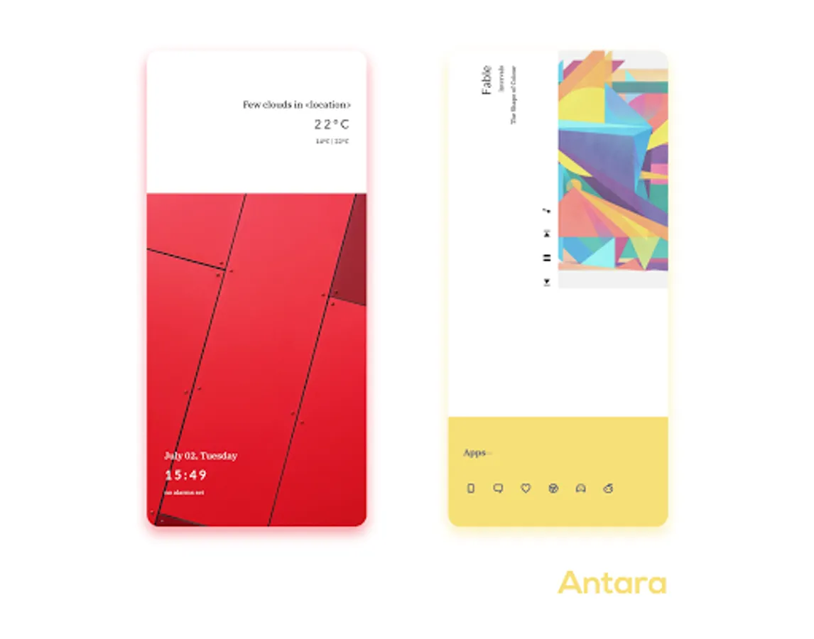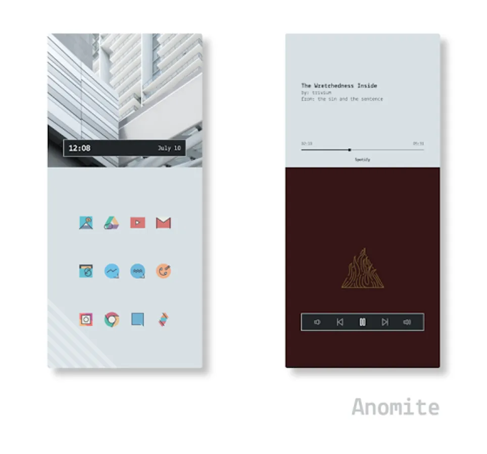 Anomite - two toned down, geometric screens (icons not included, add your own using a launcher)