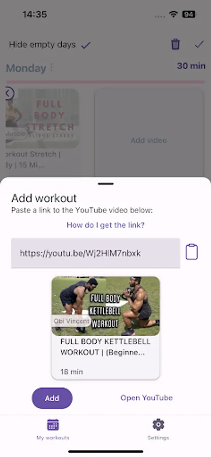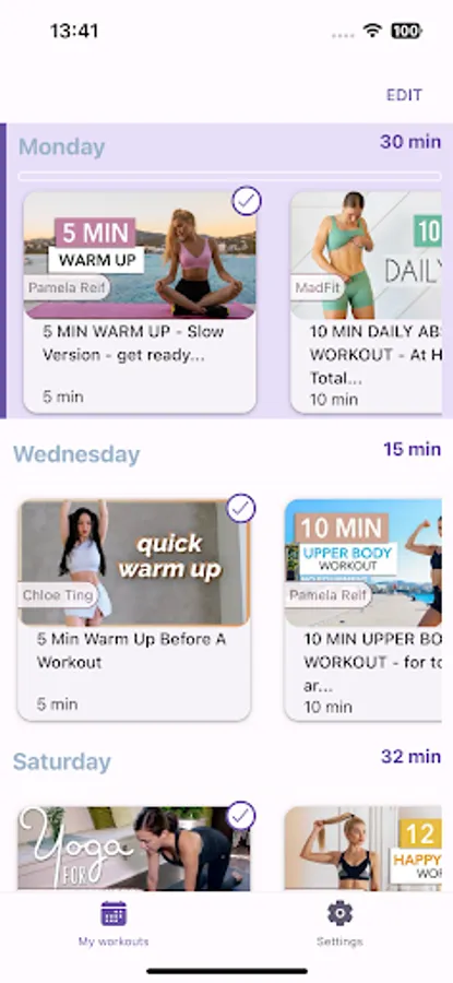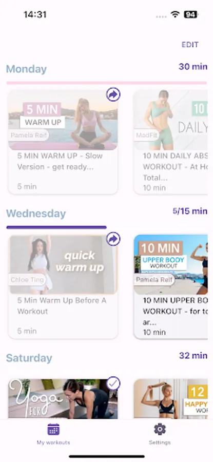 Berry lets you compose workouts for all weekdays using videos published by various trainers.
