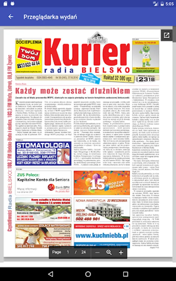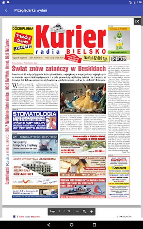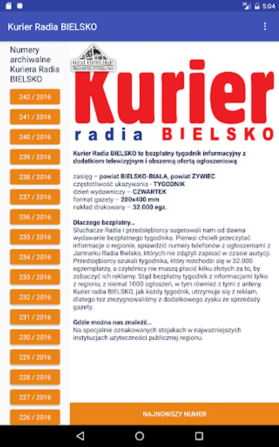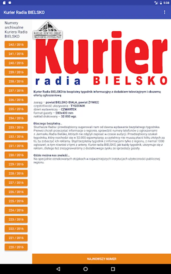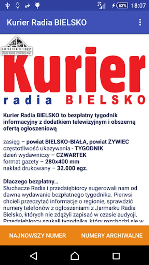 Courier Radio BIELSKO is a free weekly news with the addition of television and the extensive range of the advertising. The newspaper appeared from May 2011 until February 2017 year. It was available in paper with a circulation of 32,000 copies and an electronic. The application allows you to view an electronic version of all the numbers.