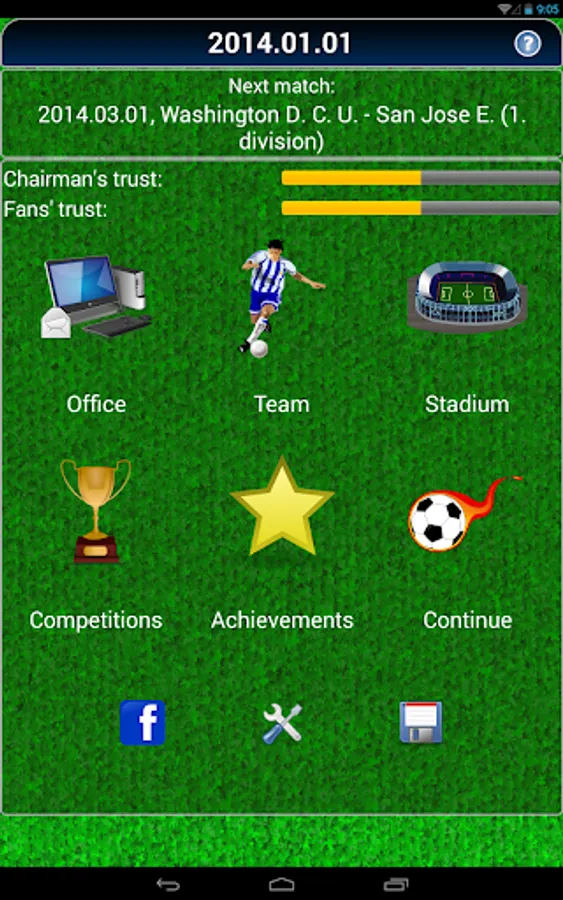 Decide about different aspects of your team, including finances, youth training, transfers, sponsorship contracts and much more! Win your matches to gain trust of your chairman and supporters. Do you like challenges? Why don't you take over one of lower division teams, and reach the top with it? Or to try your managing skills with a weaker team from the smaller country? You will face numerous difficulties, like possible aggression of your fans and even corruption offers! This is like... True Football! Can you handle it? :)