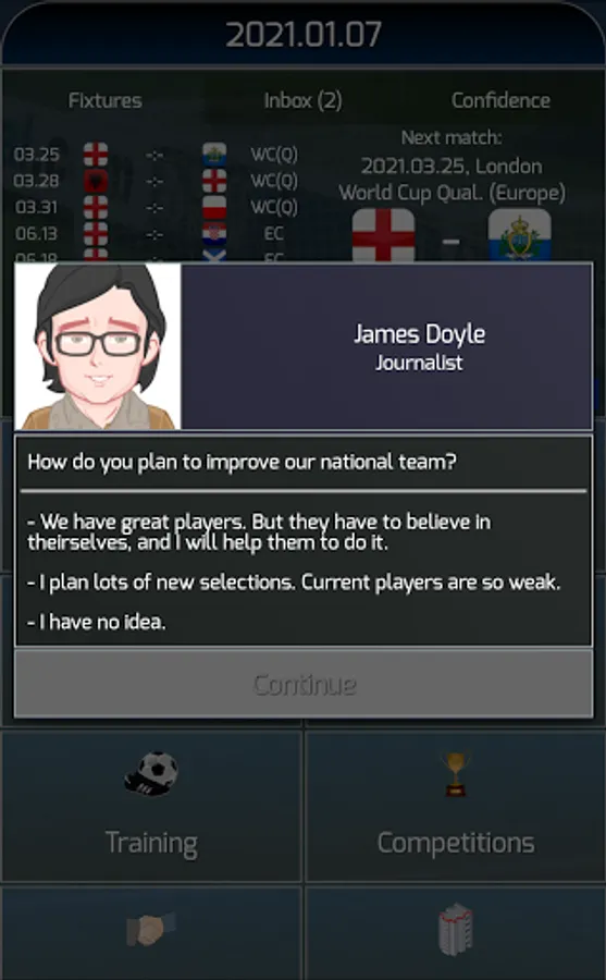 - Interviews with journalists, calls with your players - every your answer affects on their morale and other parameters. Be careful what to say!