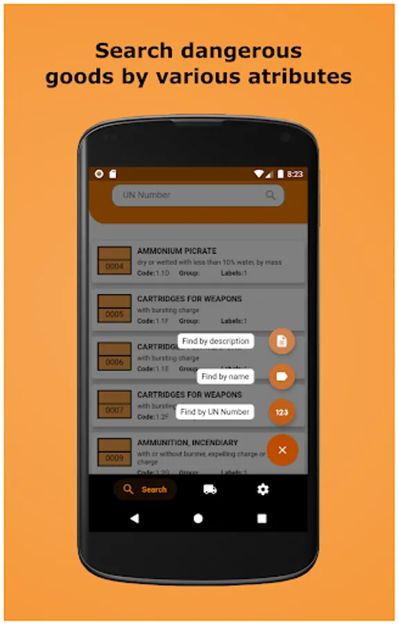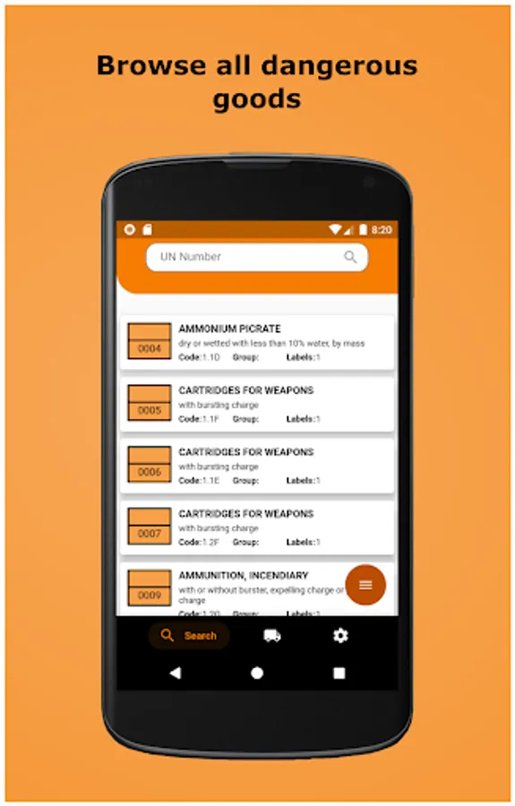 * Search for dangerous goods by UN number, name, or description.