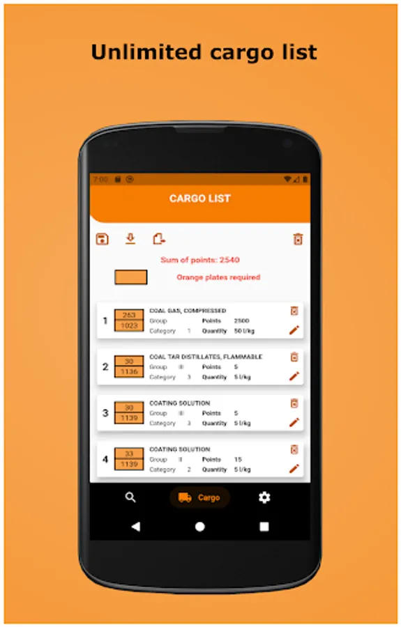 * Unlimited list of loaded goods