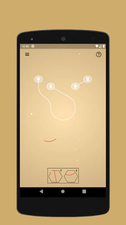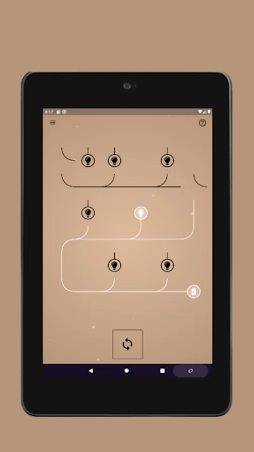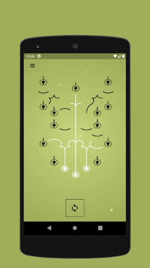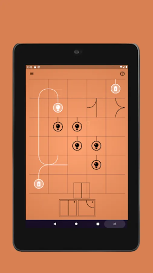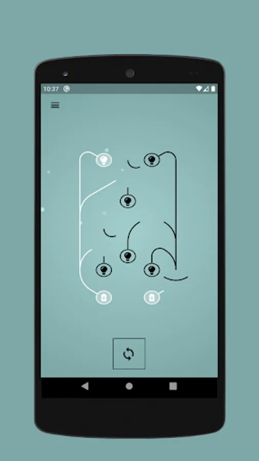At the beginning of the level of this anti-stress logic game the player will see a set of bulbs and batteries located on the board. Any bulb or battery can’t be moved or removed. The player's goal is to connect batteries and a bulb into energy loop. To create energy loop and connect the bulb to the battery. Players need to use all available wires located on the bottom of the board.
