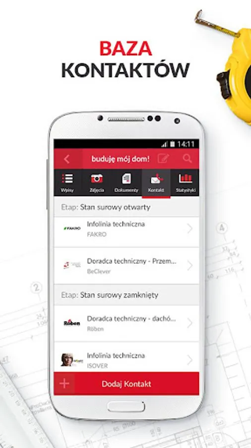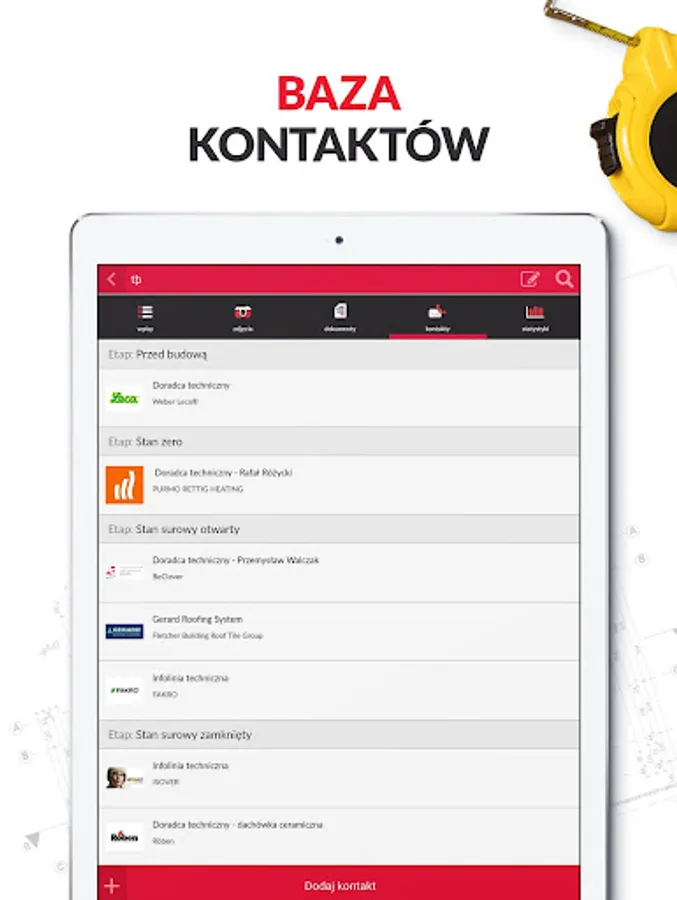Construction manager, inspector, electrician, editor, plasterer - calls to all the people involved in your building, clearly assigned to specific stages - easy communication and exchange of information with the necessary contractors - are calling, asking you confirm consult, dispelling doubts! Whenever you need additional information, you get professional help - thanks to mobiDOM applications at each stage receive a contact to the architect and technical adviser of the field - professional support always at hand.