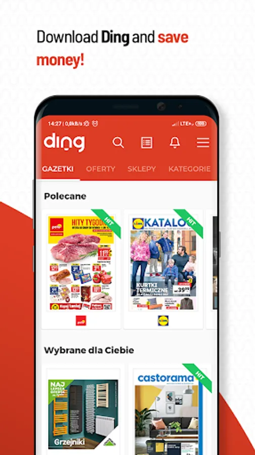 DING is a free app that displays all current promotions and leaflets with the best shopping offers personalized to your needs and preferences, and to your localization! Importantly, it is completely free and takes just a few seconds to install. Thanks to it, you keep an eye on current promotions for food products, cosmetics, home or garden furniture, all fashion trends, laptops or TV sets, sports and tourist goods, products for pets and your car.