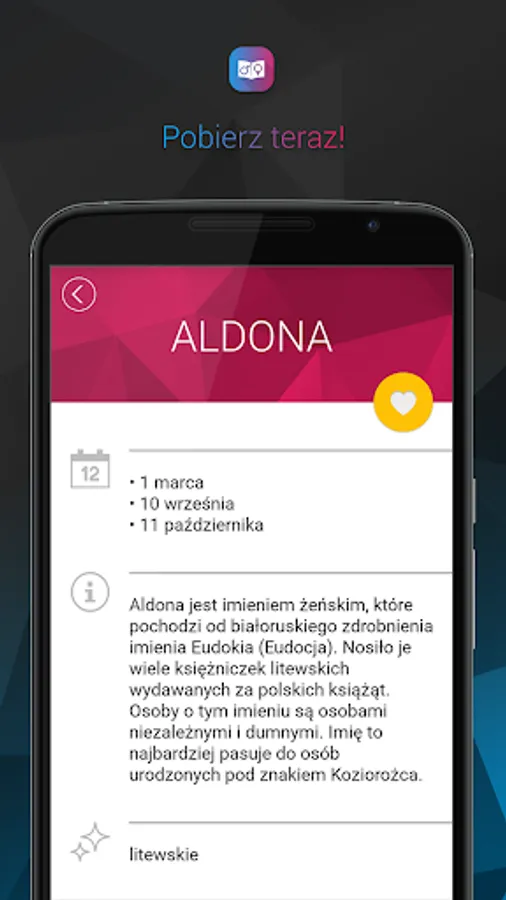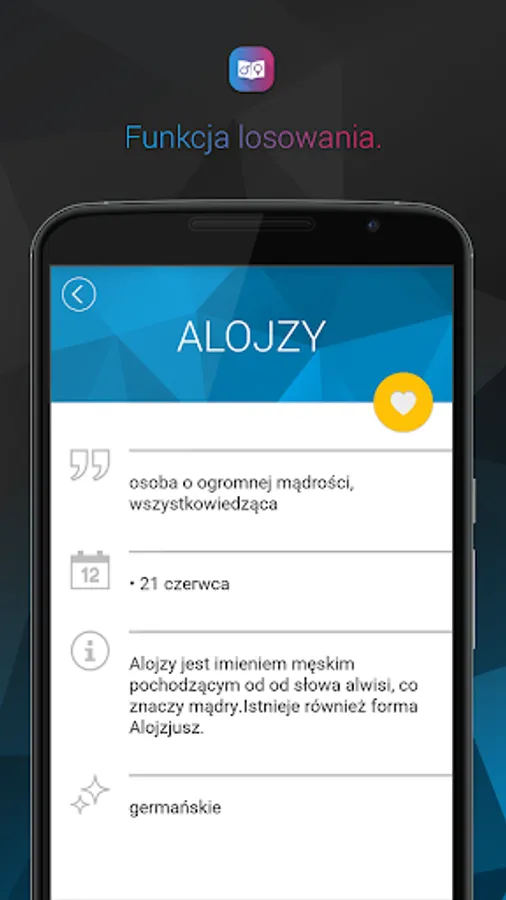Application Book of Names and Meanings is a database of more than 1,600 Polish names of male and female. Thanks to discover the true meaning of the most popular and less well-known names, their origin and name-date.