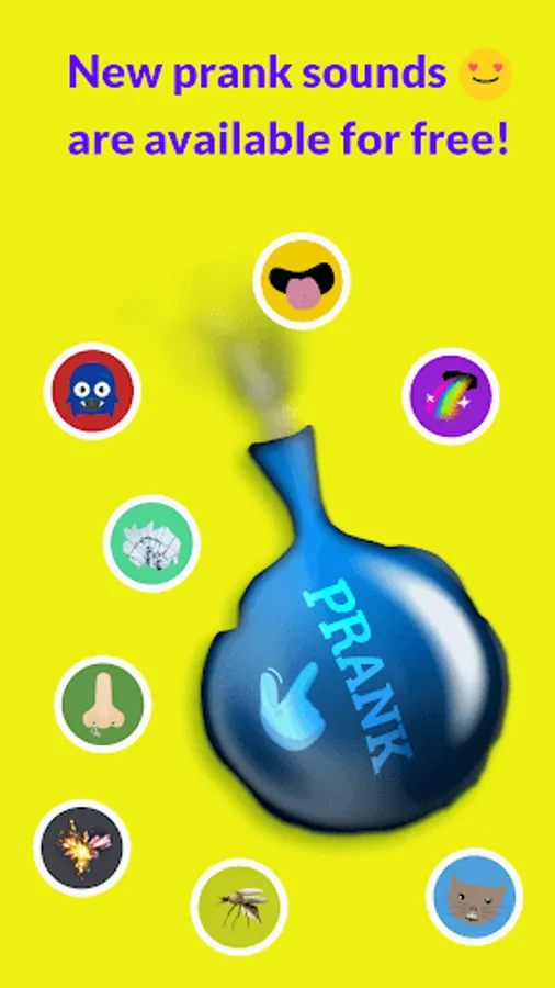 What is a Prank Sounds App? This is a funny application that can make jokes and pranks to your friends. Press the image and you will hear the crazy sounds: fart, whopee sushion, smile and other! Tap on top menu and change the sound. You can play new funny animations and make more pranks!