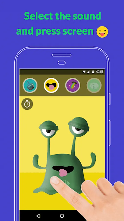 You can choose from various types of sounds. Swipe to select and tap the screen. Yes it's funny prank sounds! 🤷