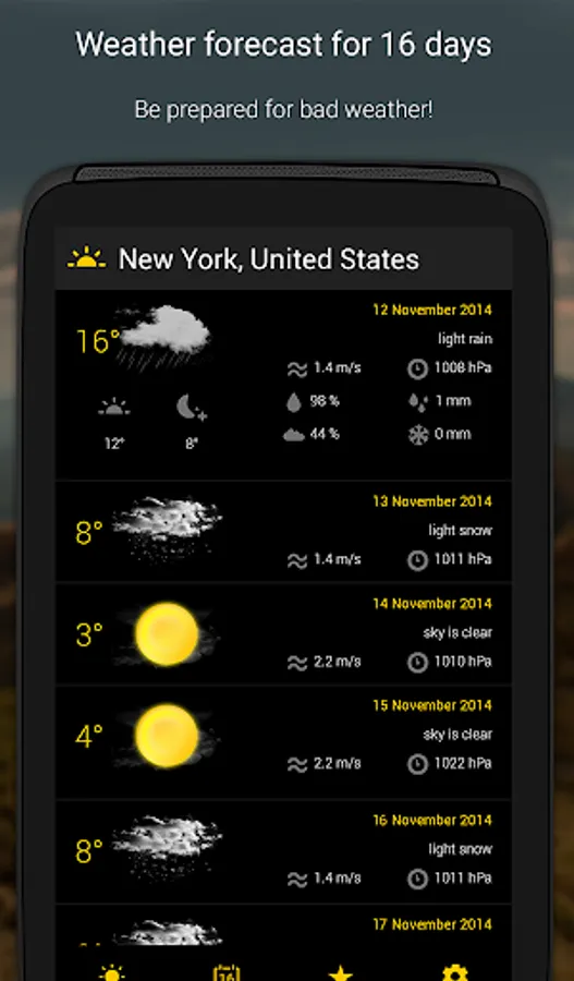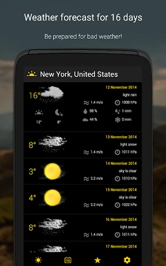 With our weather app you will always receive verified data. Download Weather Forecast 16 days app for US and then the weather will not surprise you.