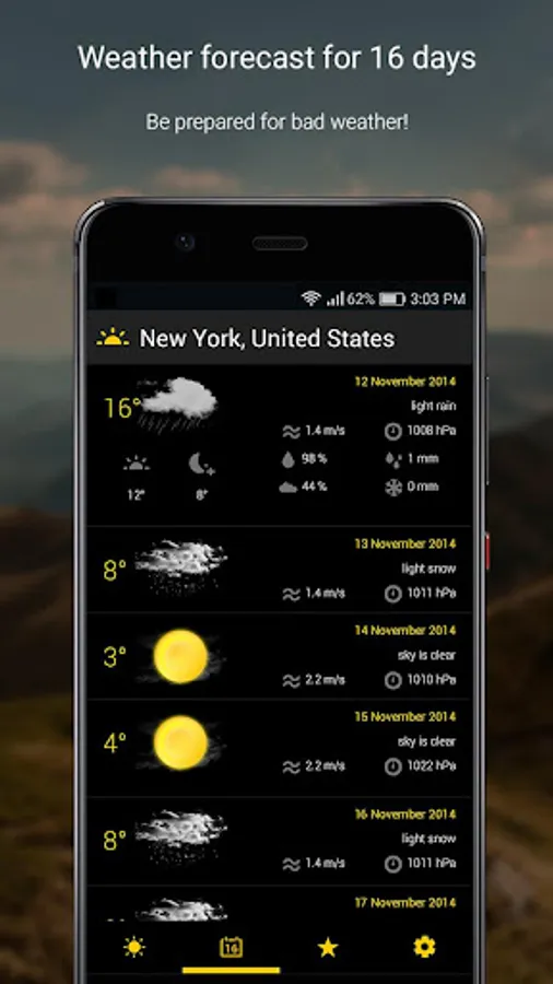 Weather Forecast 16 days is a reliable weather forecast for real-time weather, wherever you are.