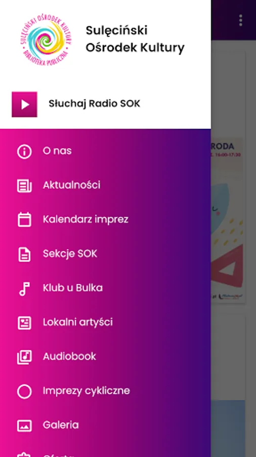 Get involved in the cultural network - SOKowirówka is a mobile application of the Sulęcin Cultural Center, thanks to which you will not only learn everything about the upcoming events, but also have access to ticket reservations, live broadcasts of Radio SOK, on-line events and an audiobook - "Fairy tales about Sulęcin ", we also recommend the growing base of local artists.