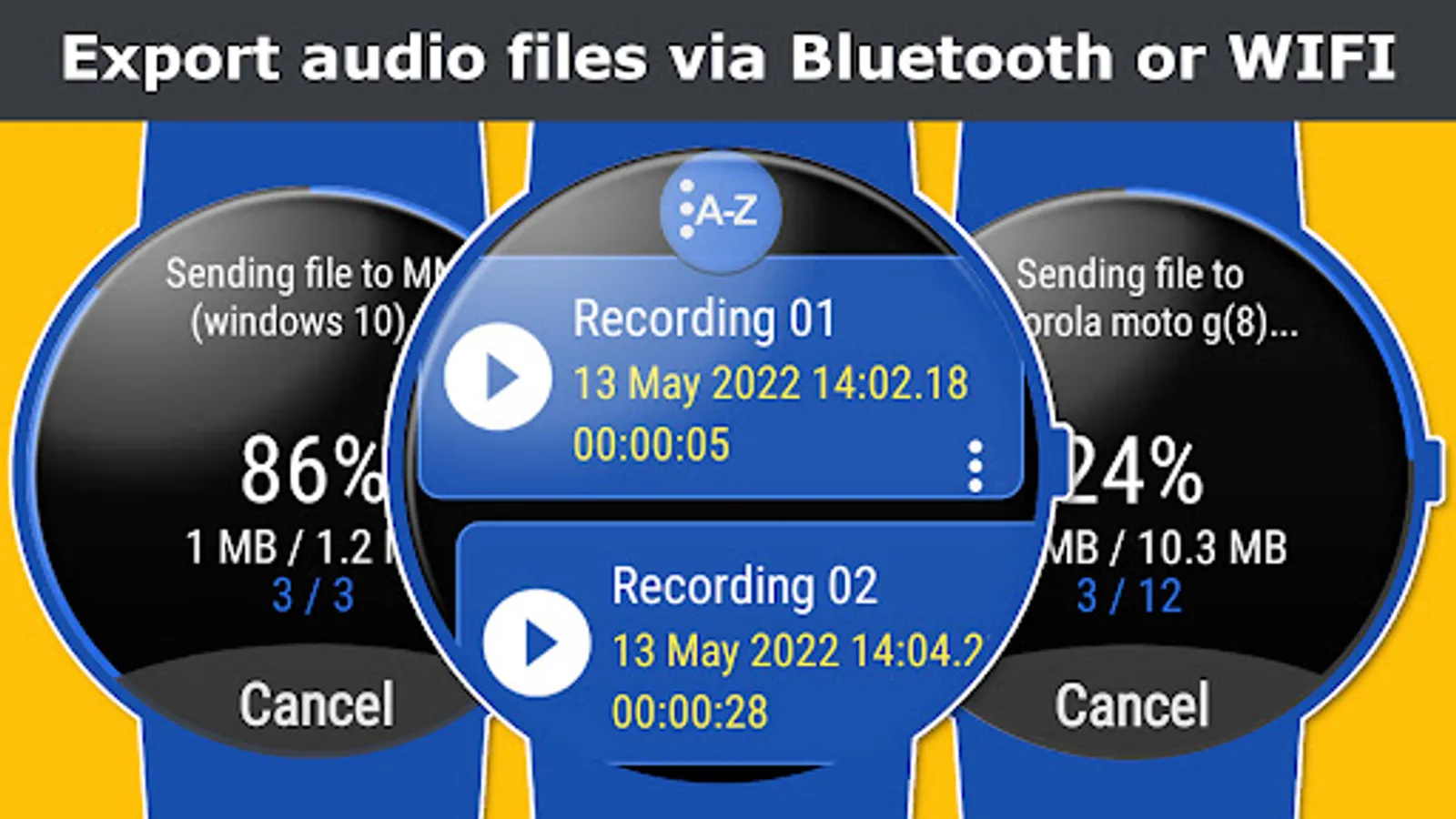 12. Export audio files direct to phone by Wear OS engine or MFT IP Tool (Wifi).