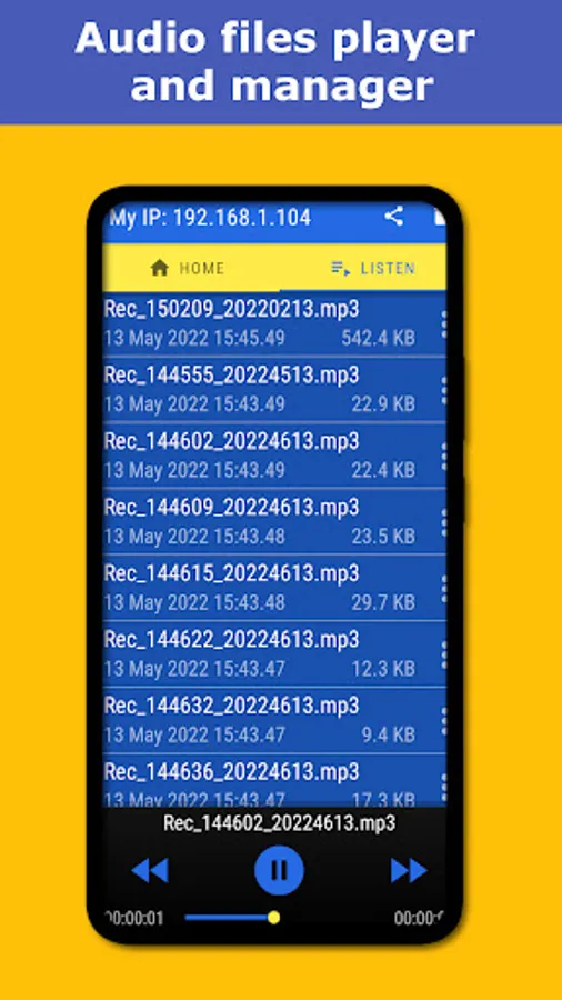 Each recording can be exported/send to phone or computer for further processing. To transfer files to phone you have to download Voice Recorder Companion or download MFT IP Tool from our site on computer. Systems Windows, MacOS and Linux are supported).