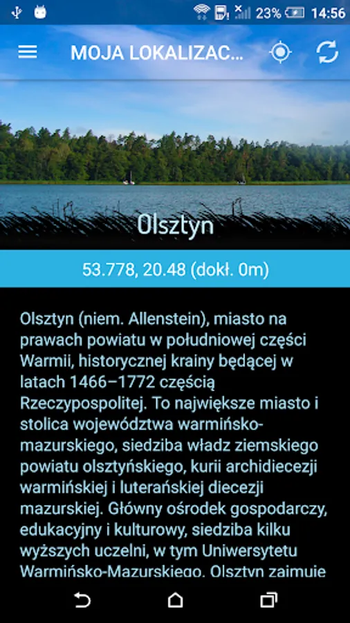 Tourist guide WM.pl is ideal for people who want to fully explore the Olsztyn, Mrągowa, Kętrzyna, Giżycka, Szczytno Ostróda Iławy, Lidzbarka Warmia, Dziatdowo, New Town Lubavian, Thanksgiving, Elk, Węgorzewo, Elblag, Olecka, Węgorzewo, Suwalki, Augustow, Olecka and even the smallest village of the Land of a Thousand Lakes. The application ideally suited to the inhabitants of the region who are looking for interesting inspiration and ready-made ideas for active a weekend.