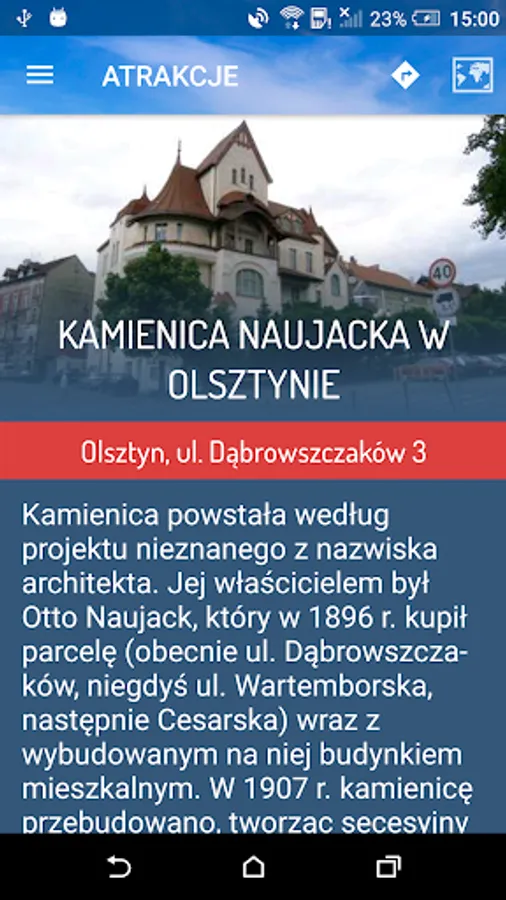 Anyone hungry traveler knowledge through our application has access to a rich database of articles from sites mojemazury.pl, naszawarmia.pl, mojezulawy.pl, twojasuwalszczyzna.pl, ziemiachelminska.pl by which know the story, the most important facts and trivia about the tourist attractions of the region, accommodation facilities, restaurants, shops and services.