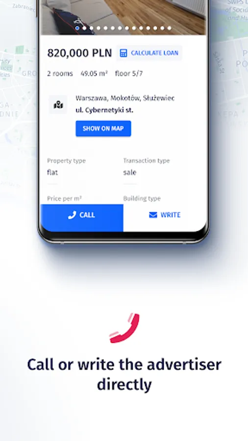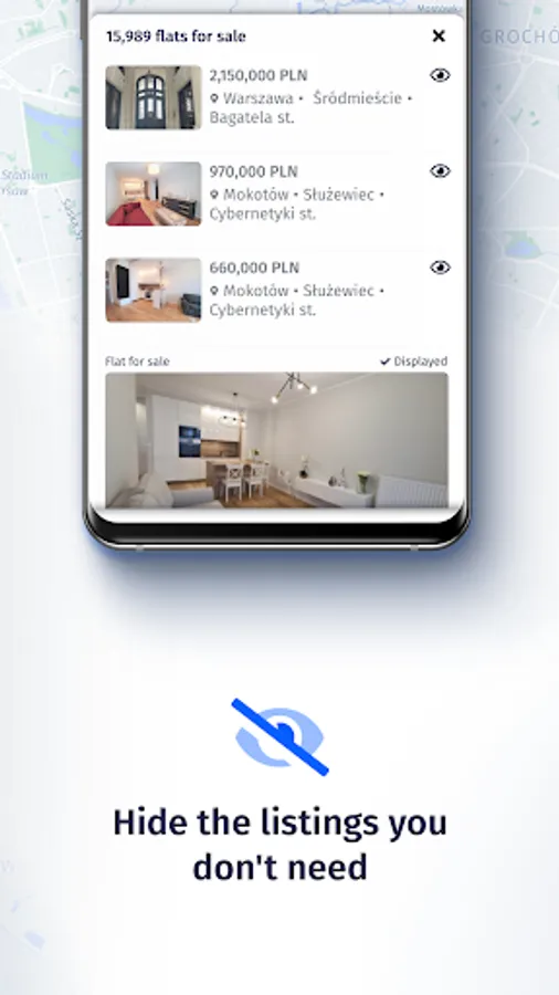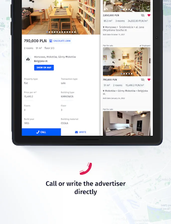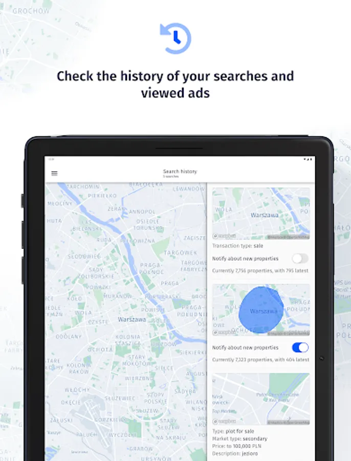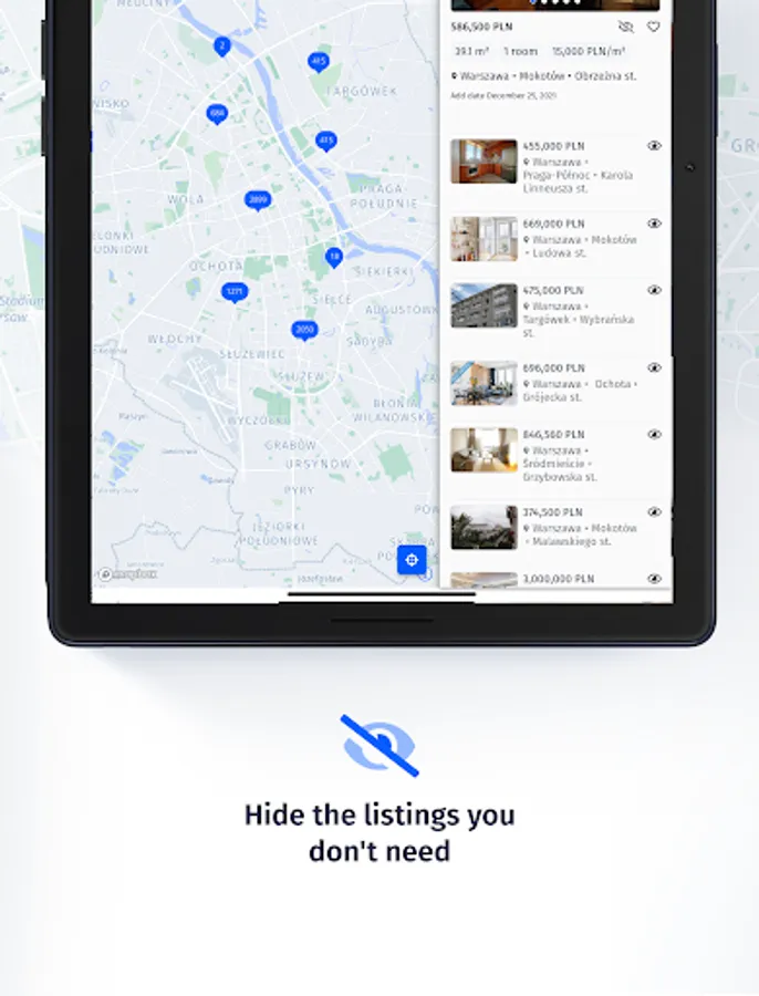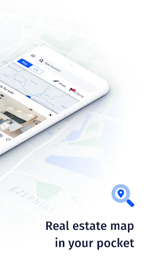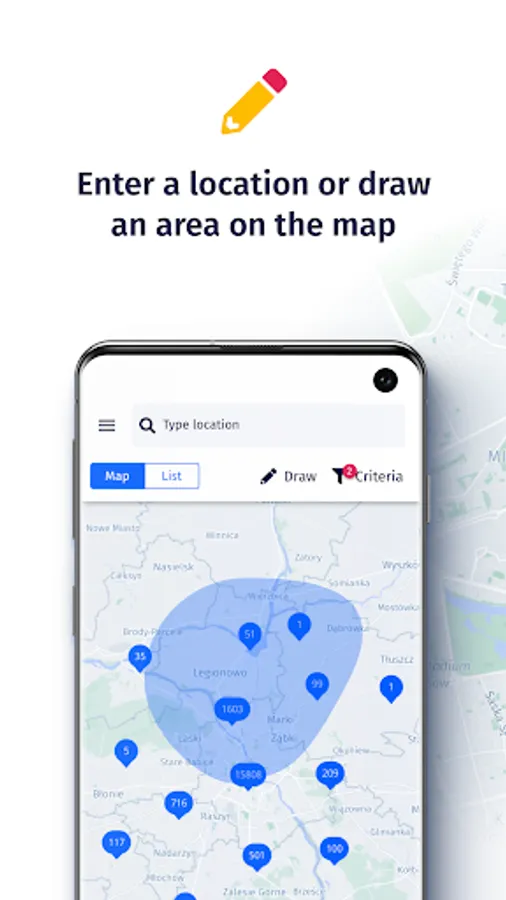 Search for offers in any location or near the place where you are now. Enter the name of the city, district, street or residential area, or mark the area on the map.