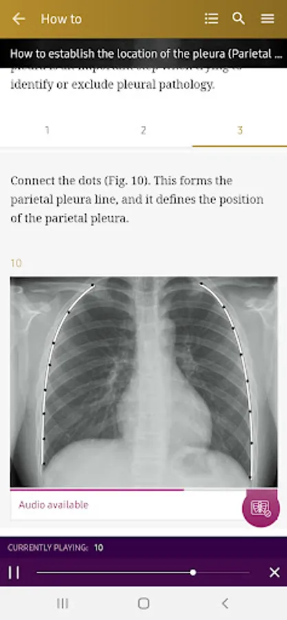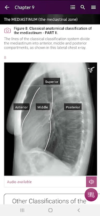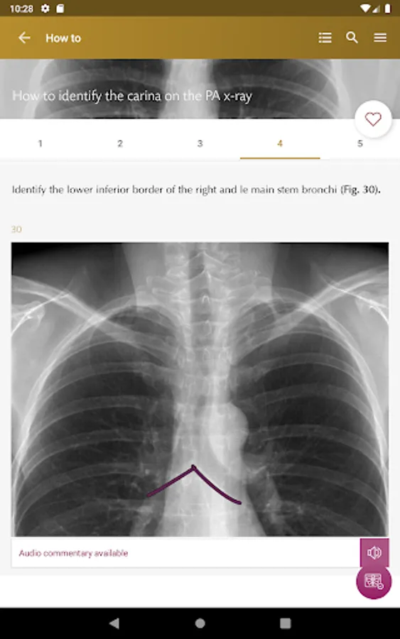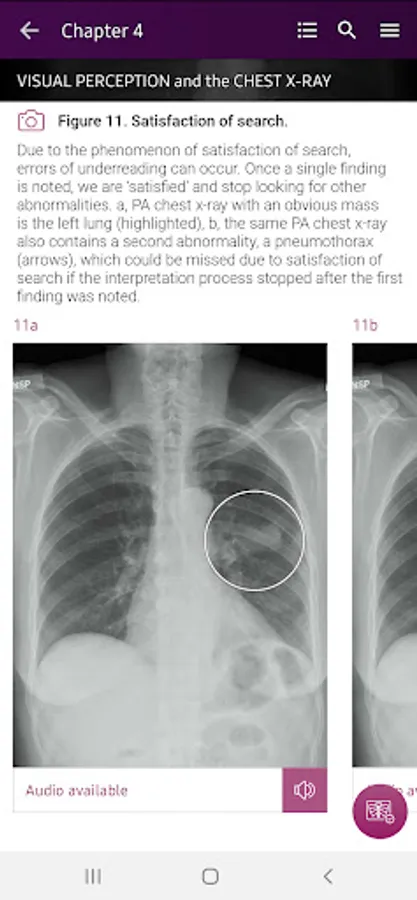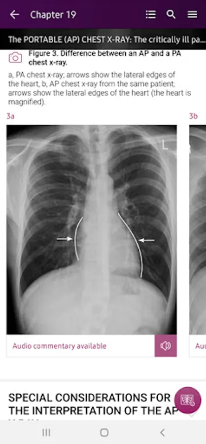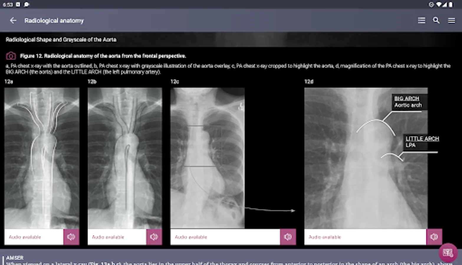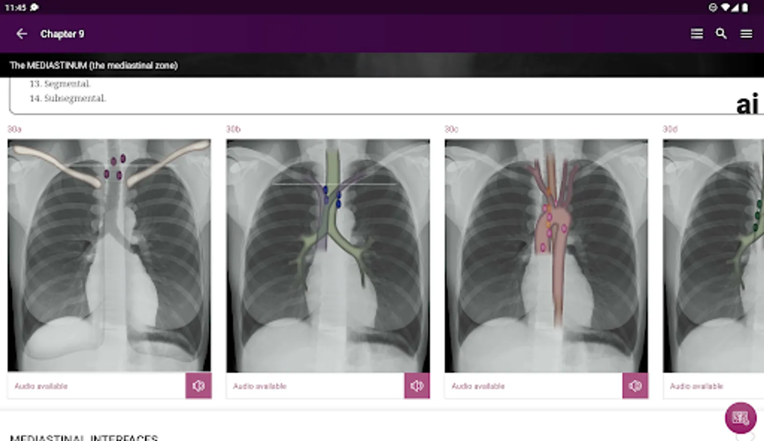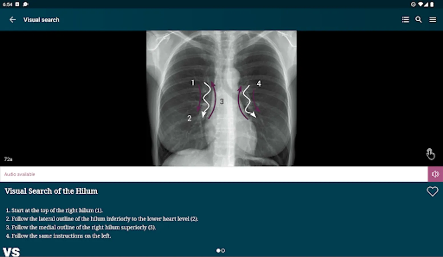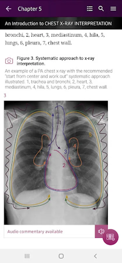 Discover Radiology: Chest X-Ray Interpretation it's well-designed mobile application that facilitates learning and revision through features such as easy navigation, notes, quick search, and the author’s audio commentary to the Radiological Anatomy through the Quick List.