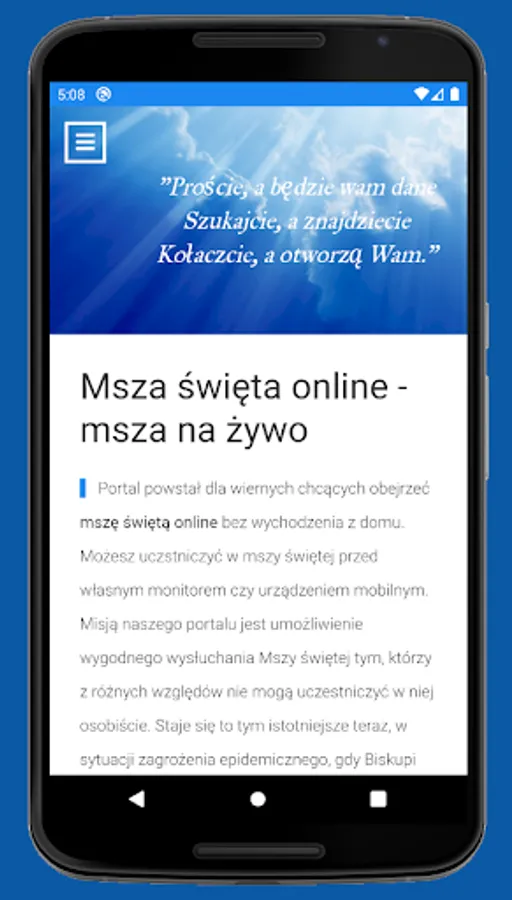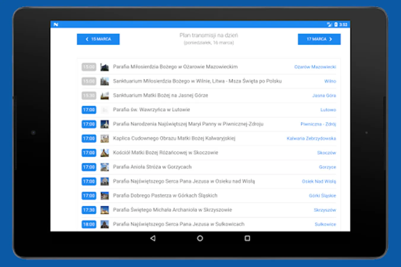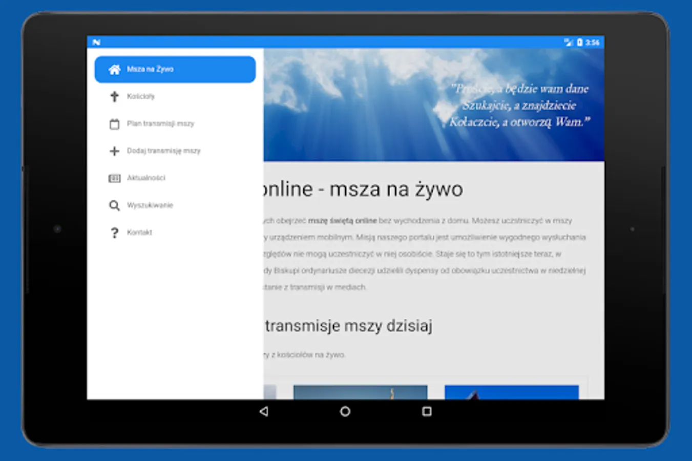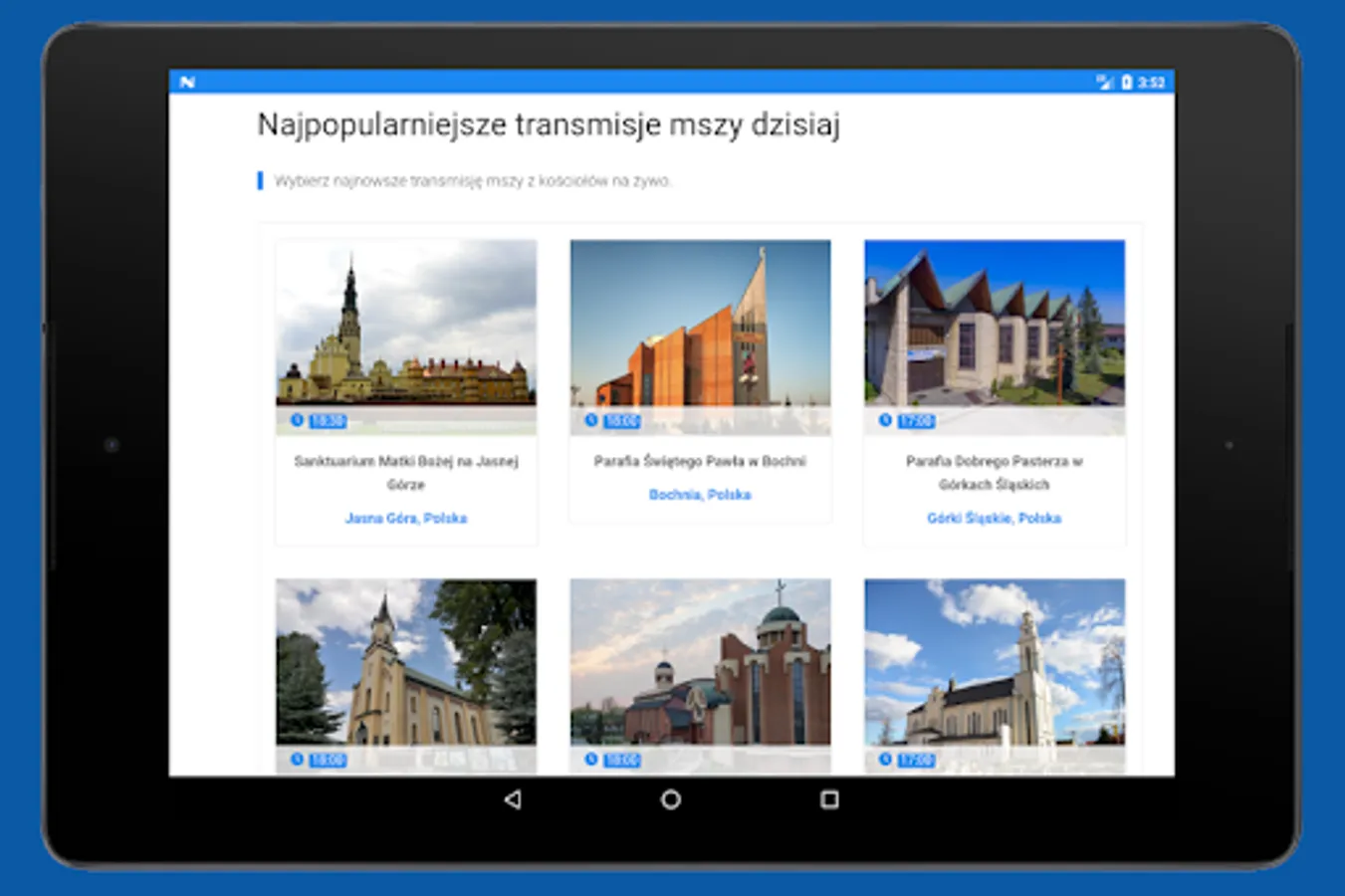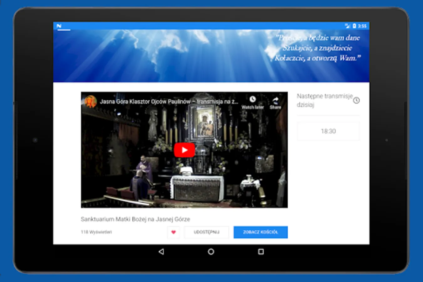 Thanks to the online Mass application, we can watch Masses and services on the phone and tablet. It gives us the opportunity to participate in adoration of the Blessed Sacrament or allows us to pray in our free time. It connects spiritually with the selected temple thanks to the constant transmission of the image received at any time on the screens of our devices. The application was created for everyone who cannot participate in the service, who are in hospitals, the sick and for those traveling to places where there are no temples.