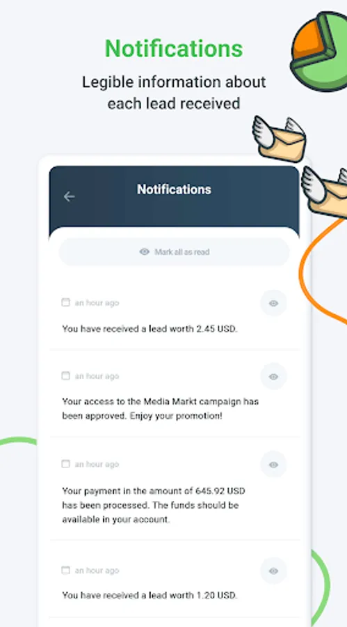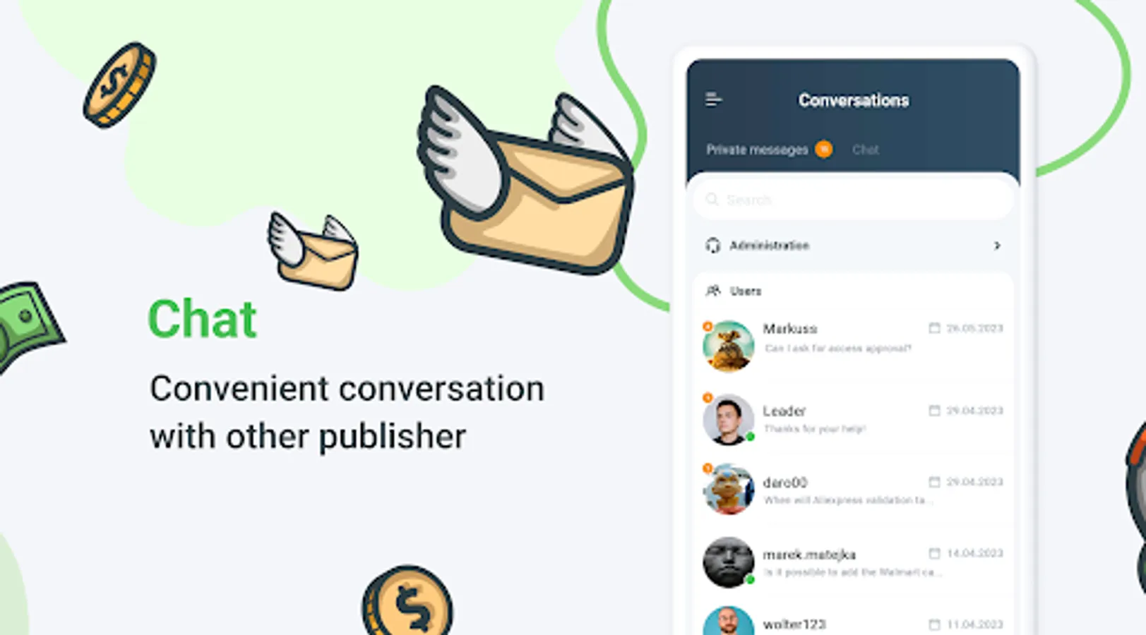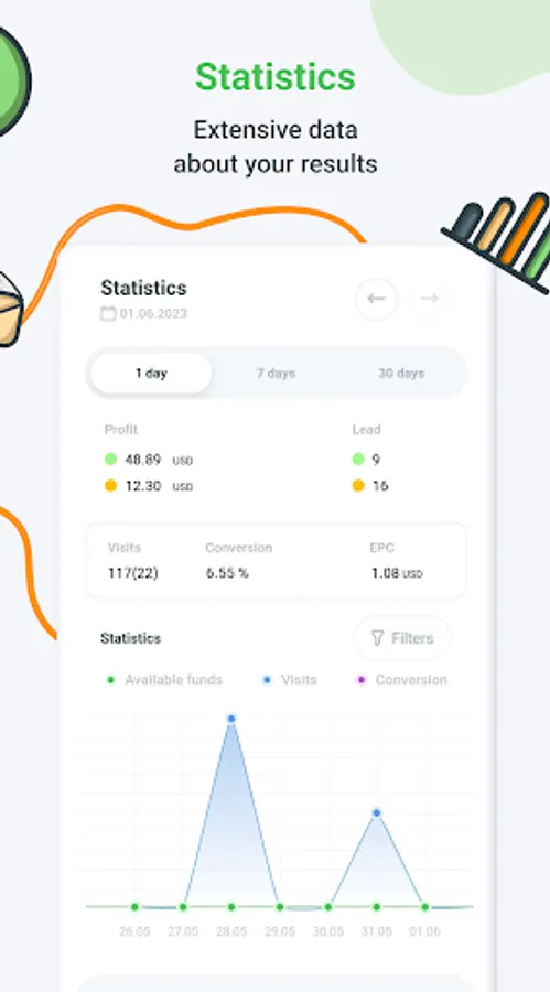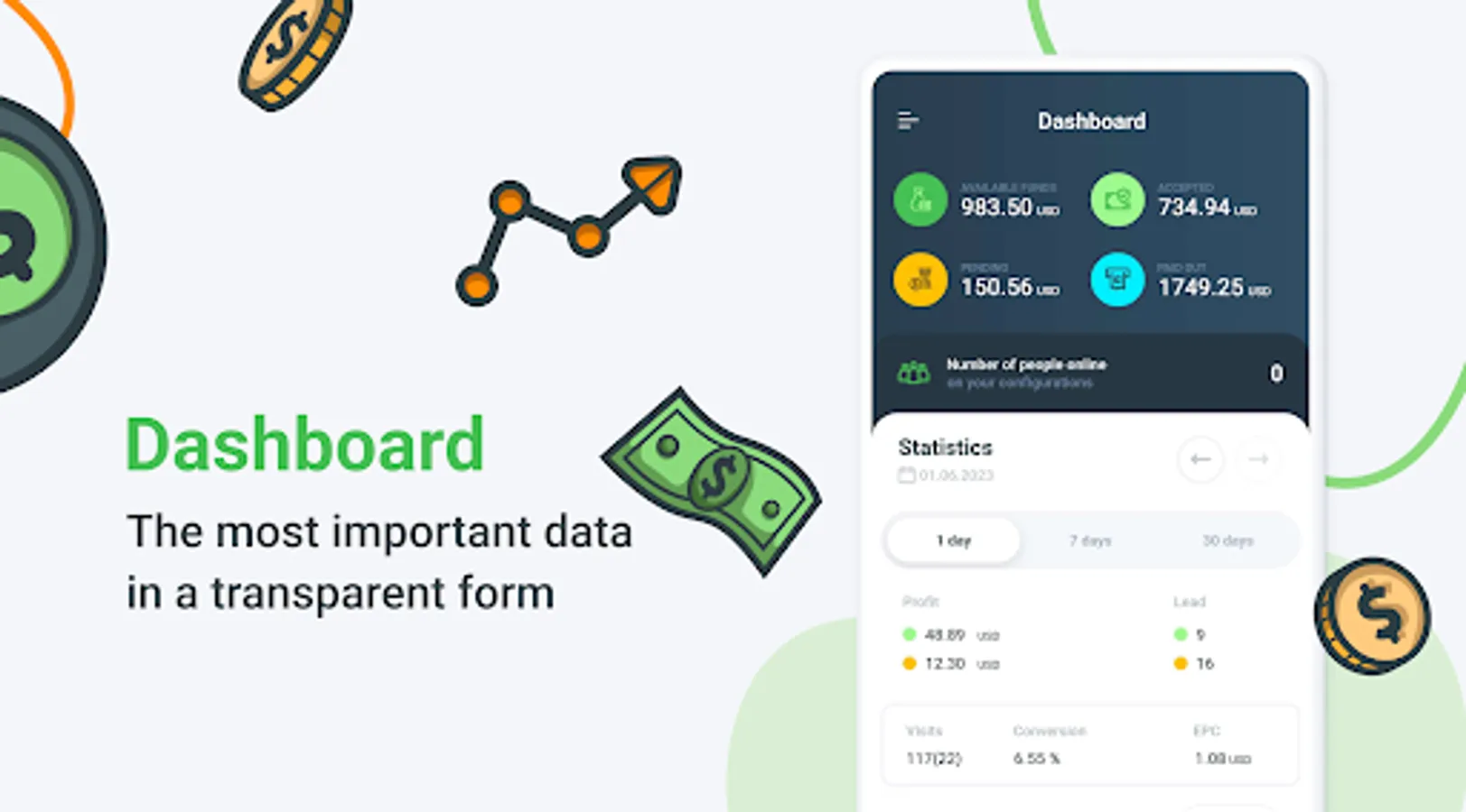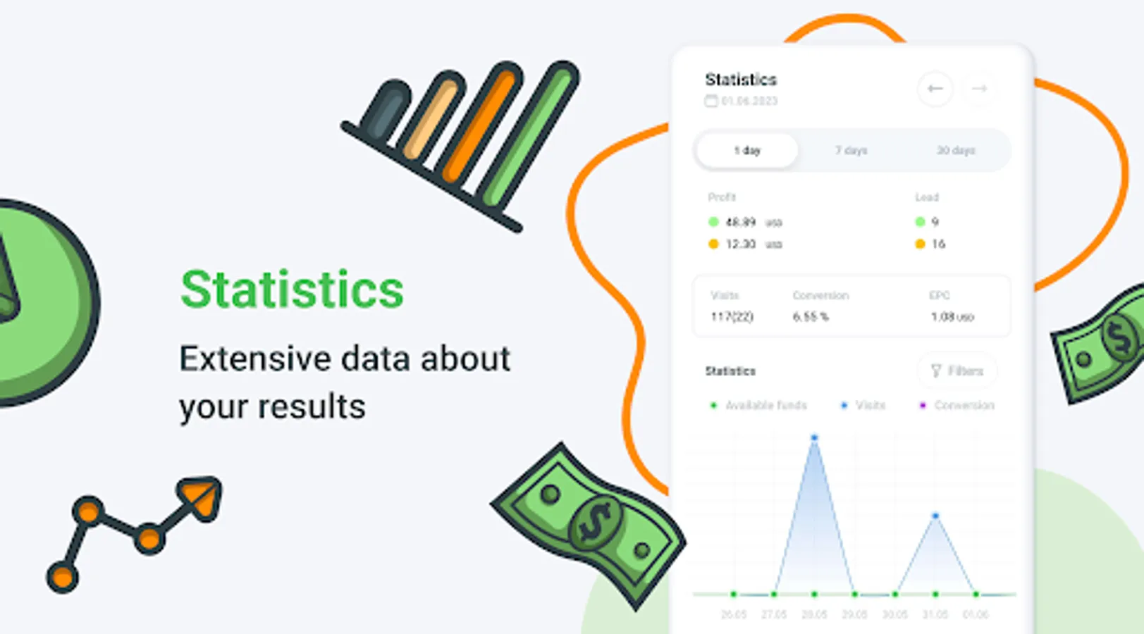 Our app provides perfect capabilities for an affiliate marketing publisher who knows their stuff. Check out current programs, news, statistics, and track your earnings. Having your account always at hand will give you the best control over your actions.