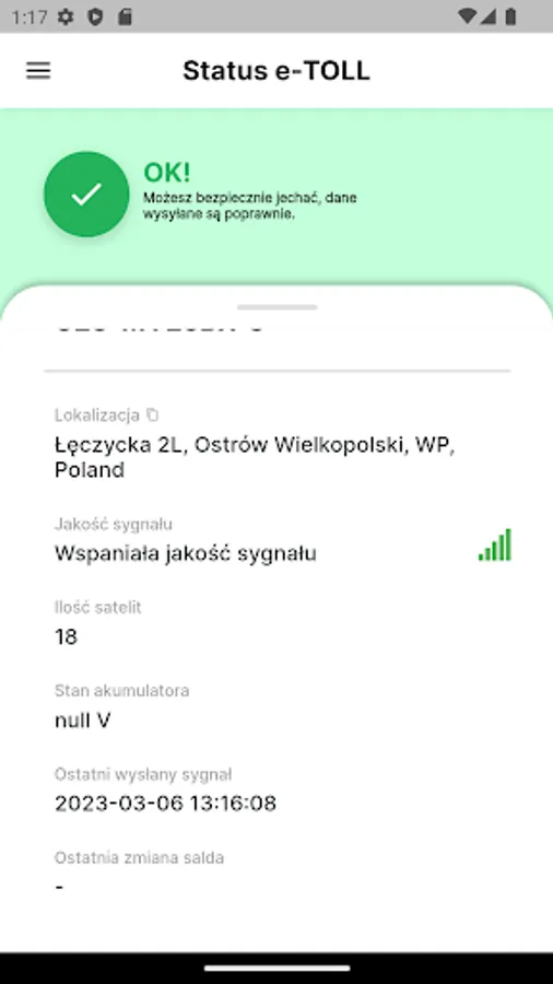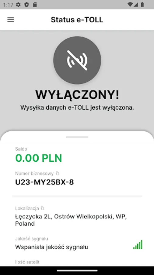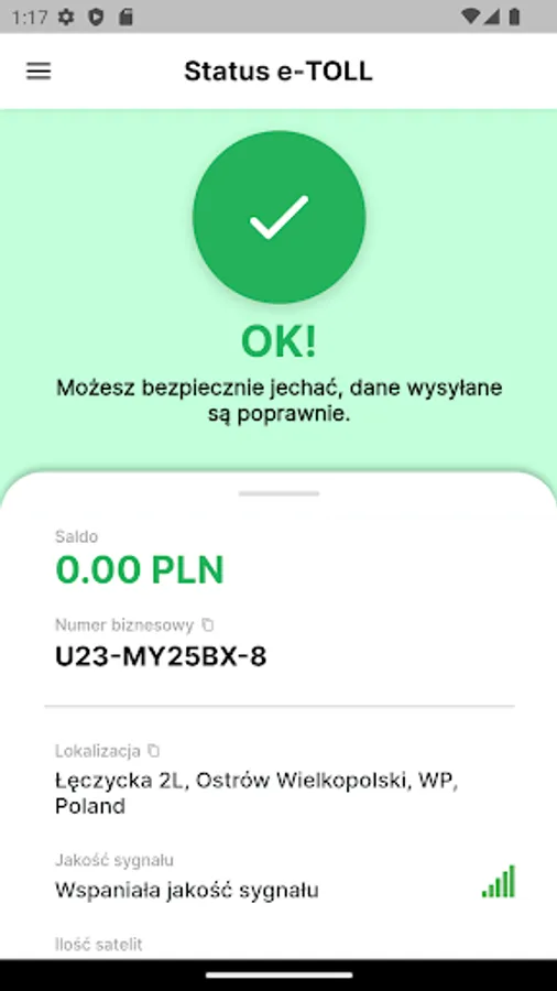 Thanks to the Mobile Application, the driver has the ability to monitor the status of the e-TOLL system on an ongoing basis. Clear information, statuses and PUSH notifications regarding the operation of e-TOLL allow you to reflect the current status of the e-TOLL system in the vehicle, in addition, the application user can check the location and account balance.