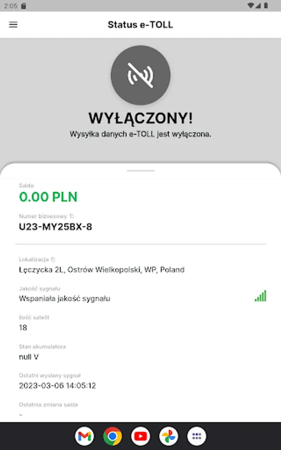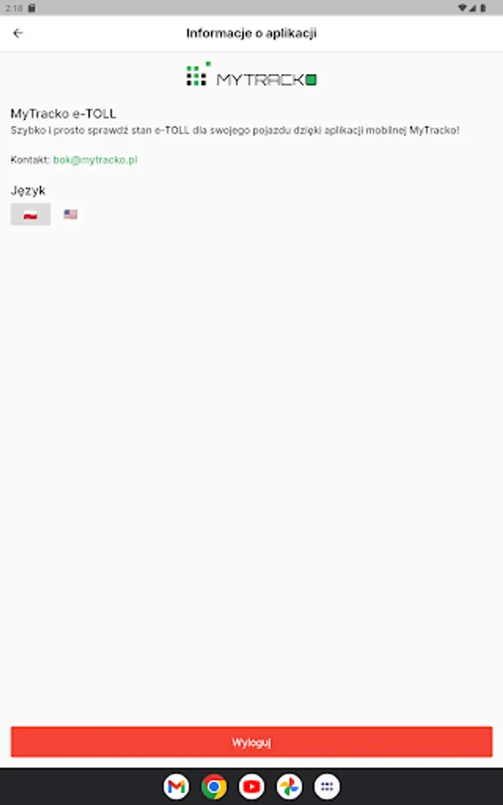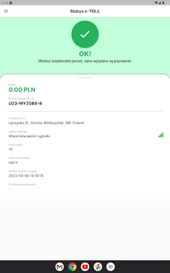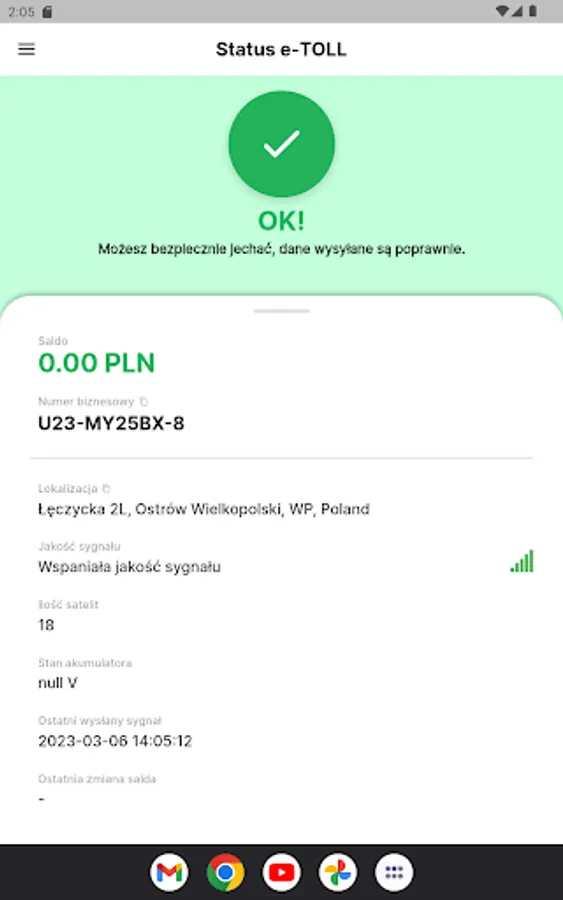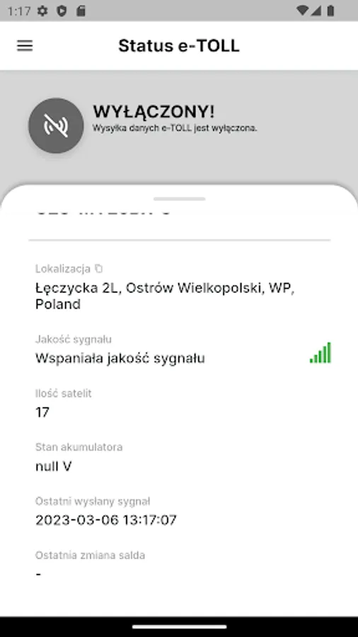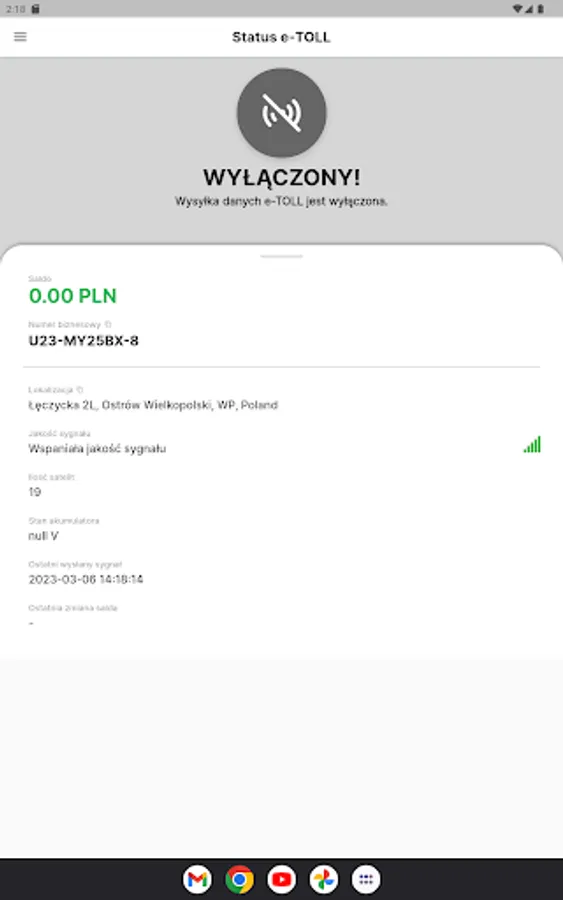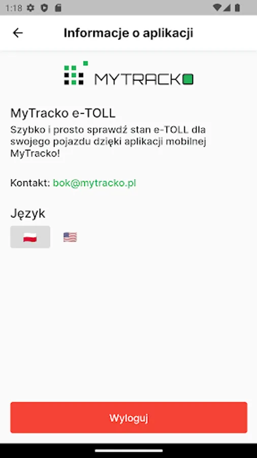 The application allows you to view the actual status of the e-TOLL device from MYTRACKO.