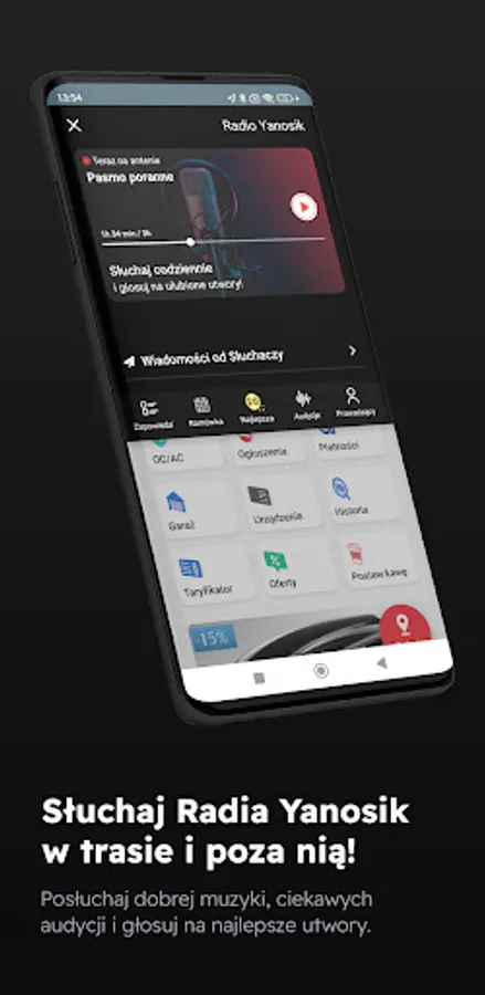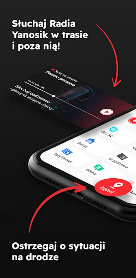 Yanosik not only helps on the road, but also makes your journey more pleasant. Turn on Radio Yanosik, listen to good music and vote for the best songs. Interesting broadcasts, podcasts and information from the country and the world are also waiting for you here. You can listen to Radio Yanosik not only on the road, but wherever you have access to the Internet.