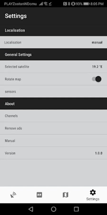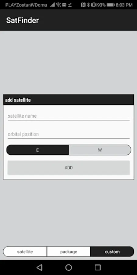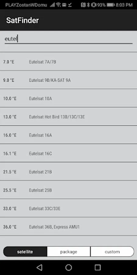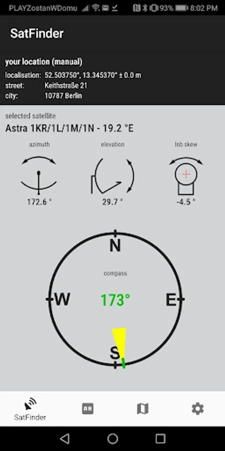 SatFinder is a tool designed to help you setting up your satellite Dish (the Dish). Based on a given location it determines the angles of azimuth and elevation and shows you in which direction to point your Dish. The result can be seen on compass and on a map. It has also AR (augmented reality) vision.