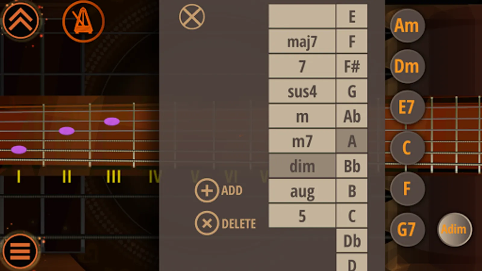 ♫ 2 play modes: chords or solo (fret/chord mode)