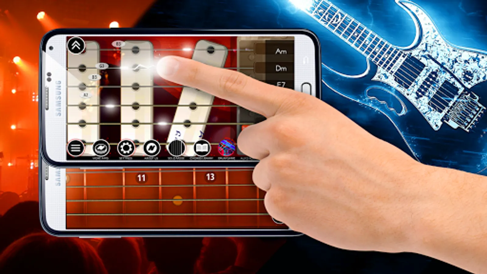 ★ Best Electric Guitar is similar to the real guitar and it is one of the most realistic guitar simulator apps featuring an awesome sound quality. All the notes have been recorded from the real live electric guitar.