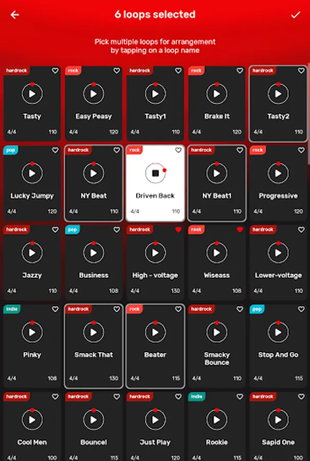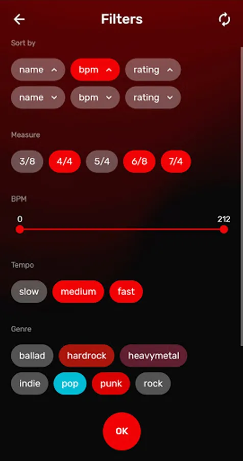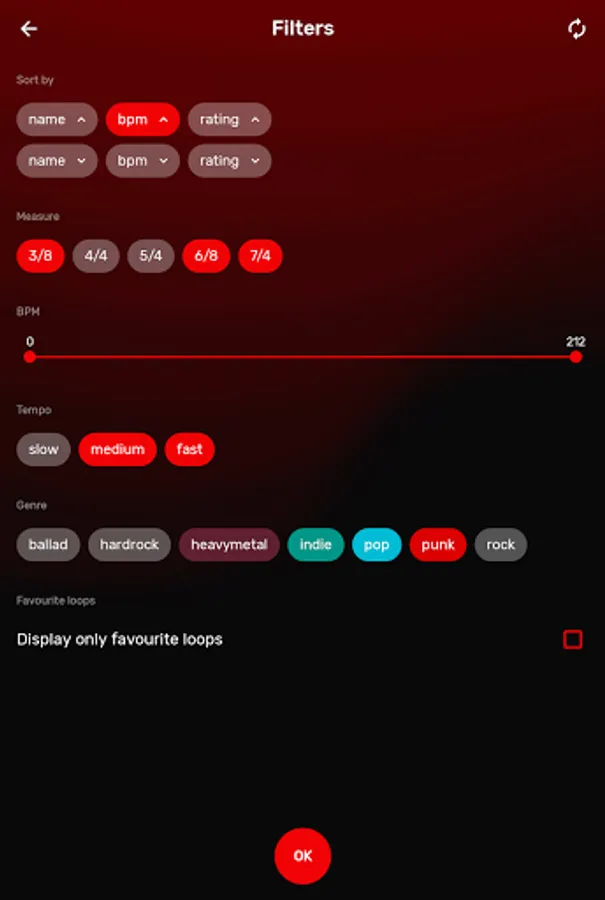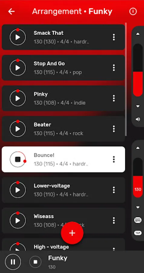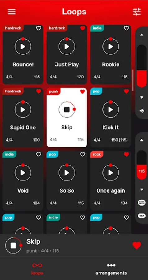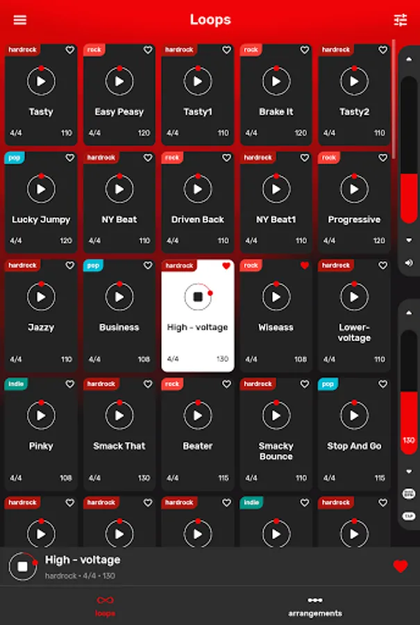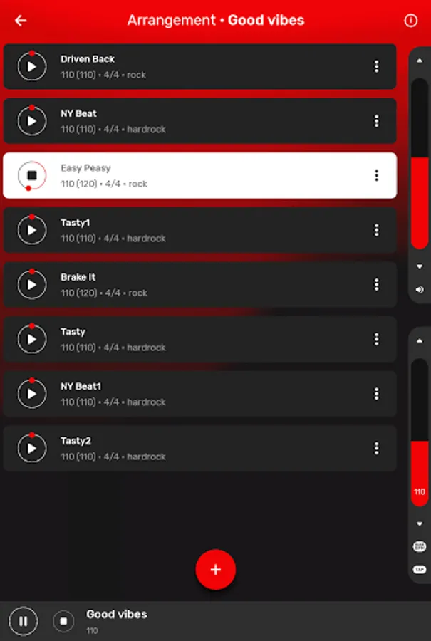 You can sort beats by: BPM, type (ballad, hardrock, heavy metal, indie, pop, punk), tempo and other. If you want - choose your favourite tracks and make your own list.