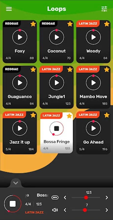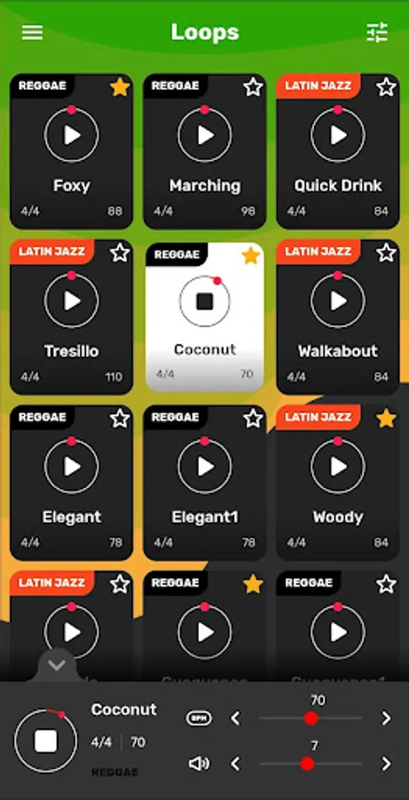 You can sort beats by: BPM, type (reggae, ska, latin jazz), tempo and other. If you want - choose your favourite tracks and make your own list.