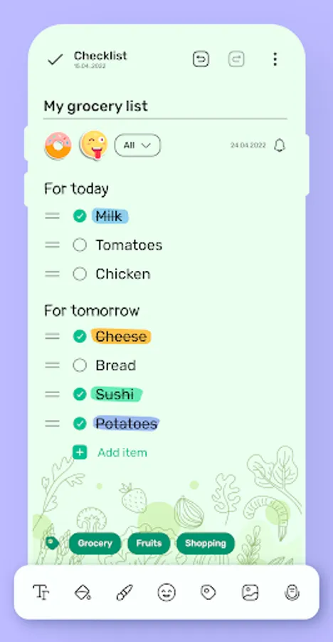 - Emojis, stickers, and backgrounds – you can customize your note with free emoticons, stickers or wallpapers