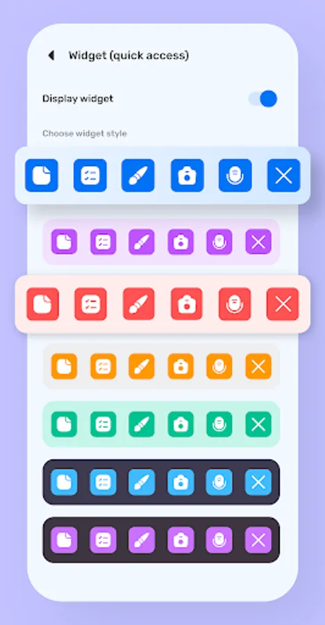 - Widget – set a widget in the notification bar to have the notepad app always at hand. Pick a theme for your widget – it's available in many different colors in light and dark mode!